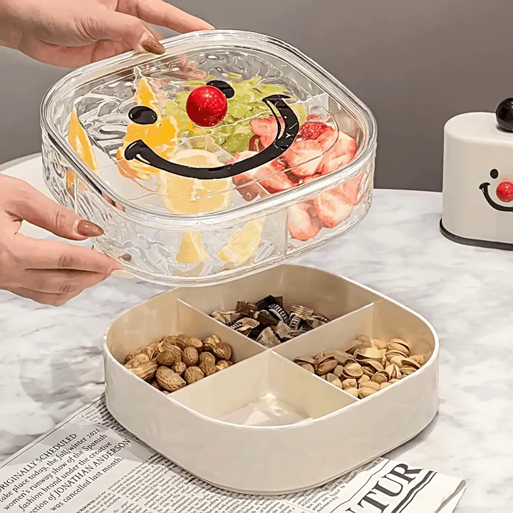 net red high-looking plastic smiley face fruit box household living room sealed with lid snacks nuts fruit storage box generation hair