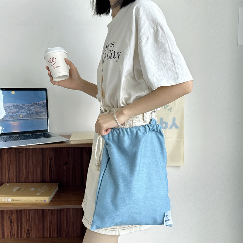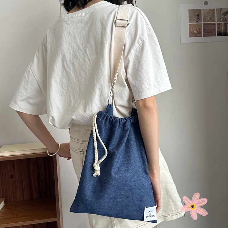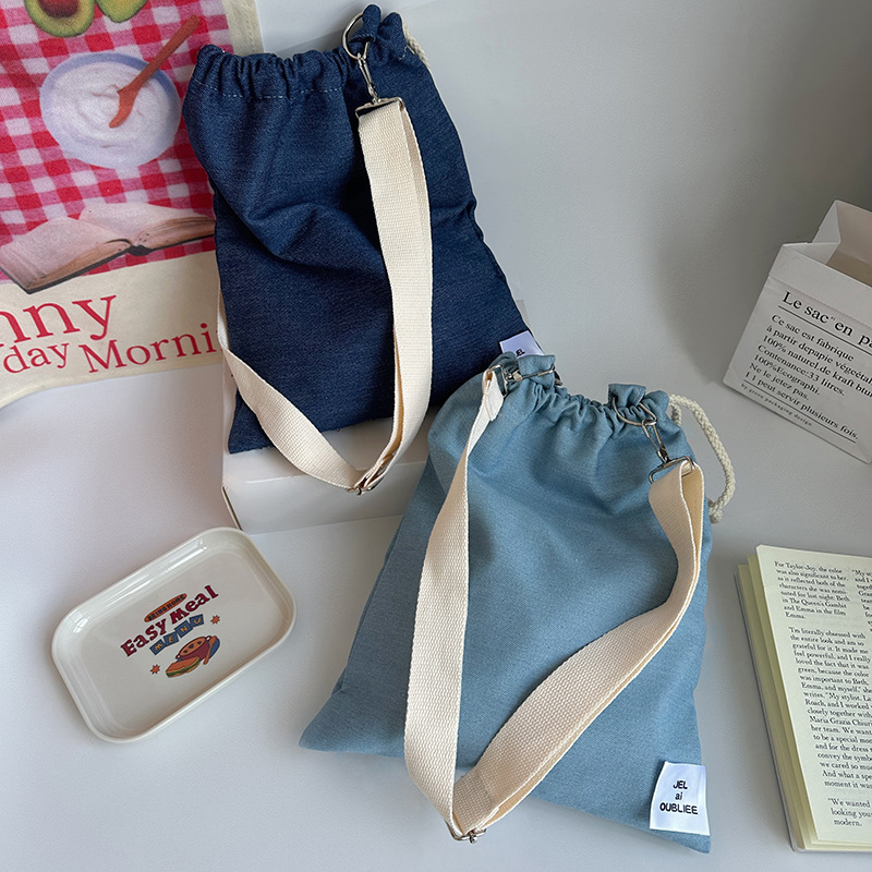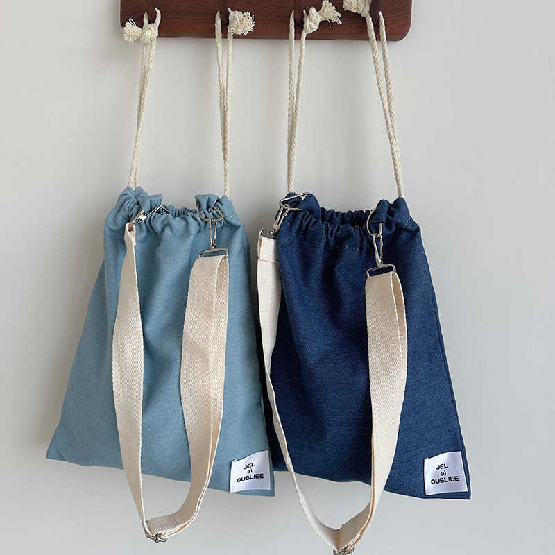 crossbody drawstring light color denim