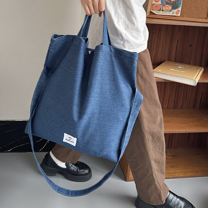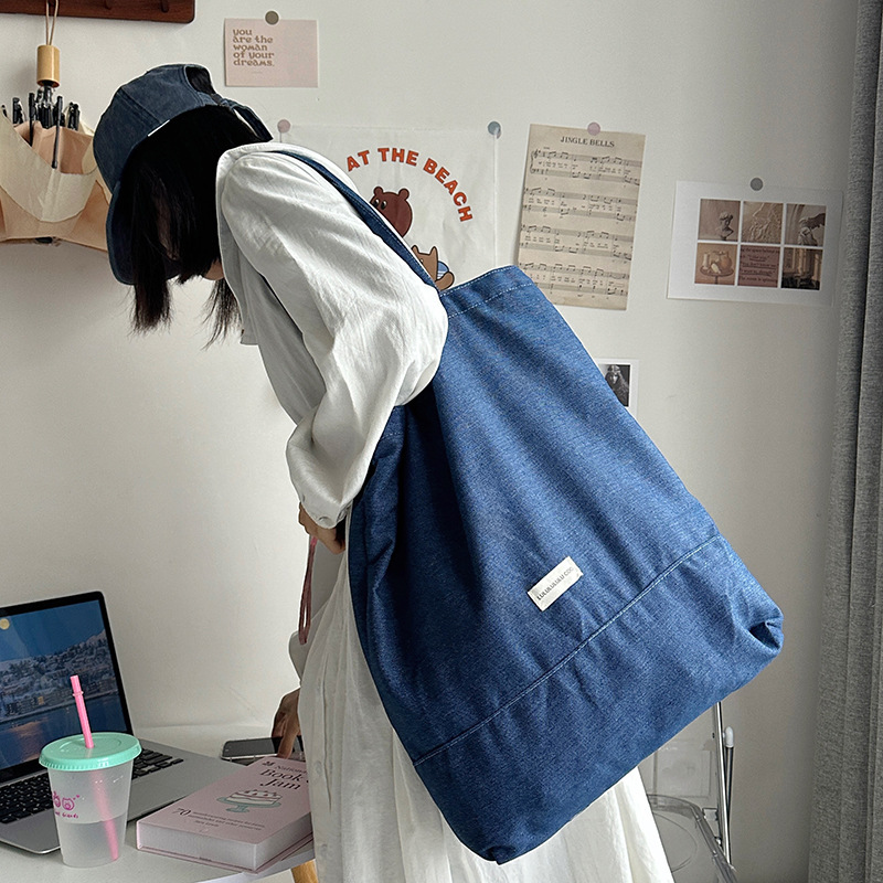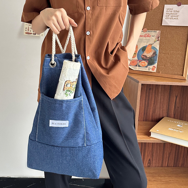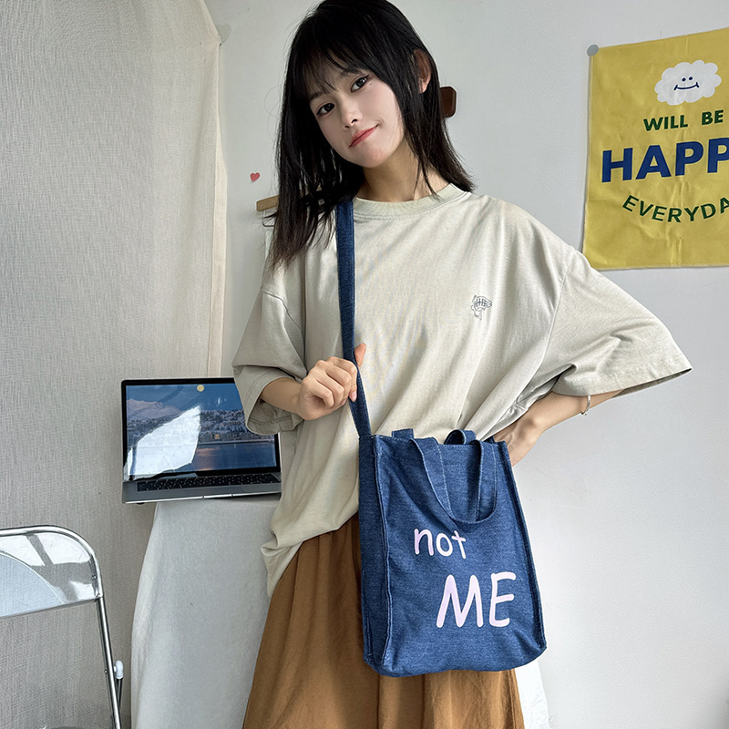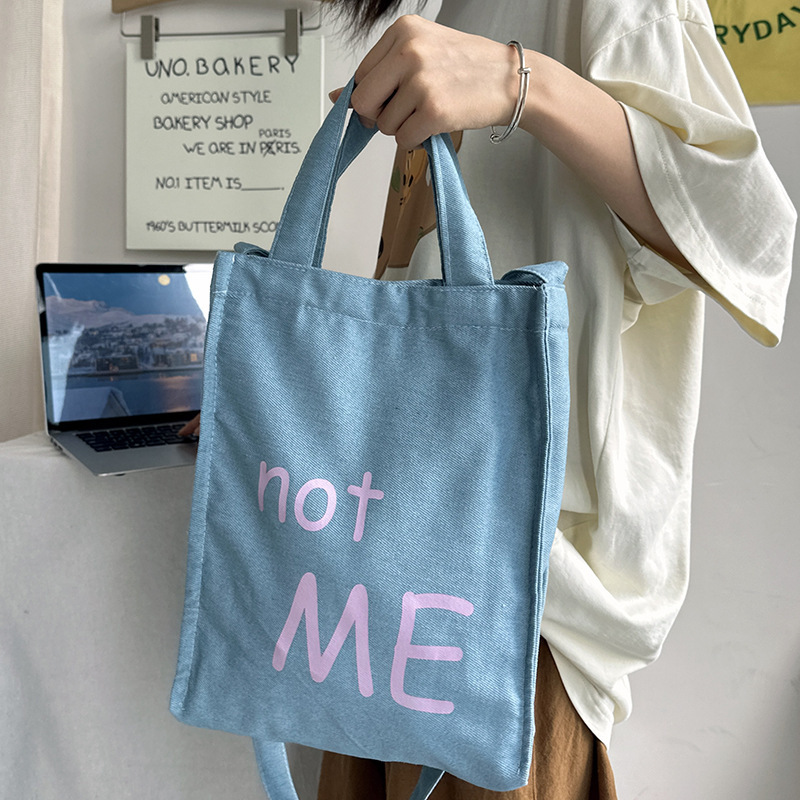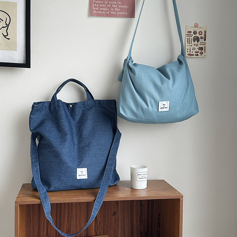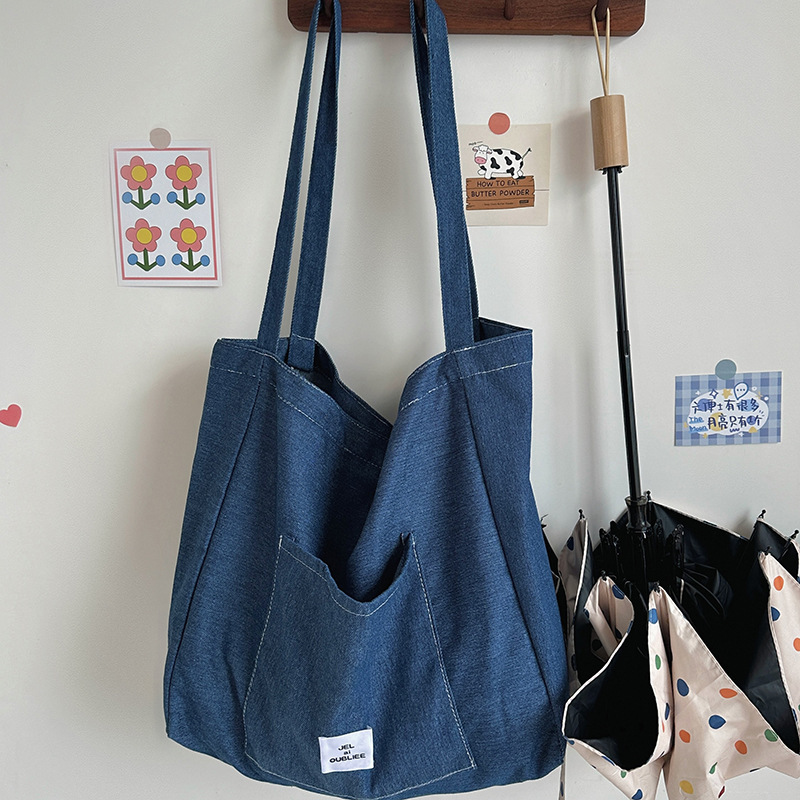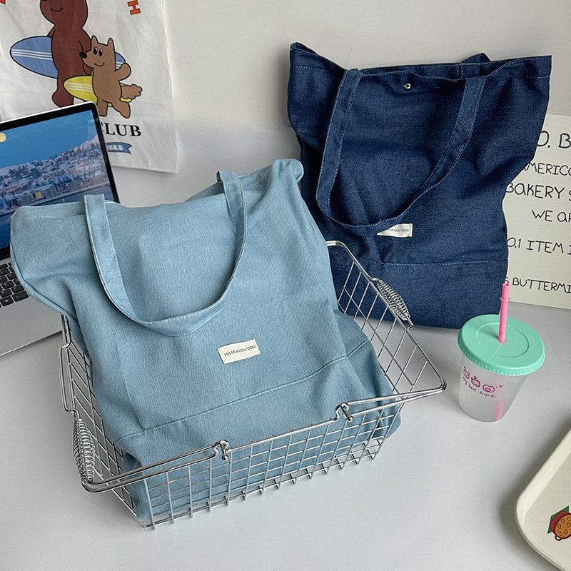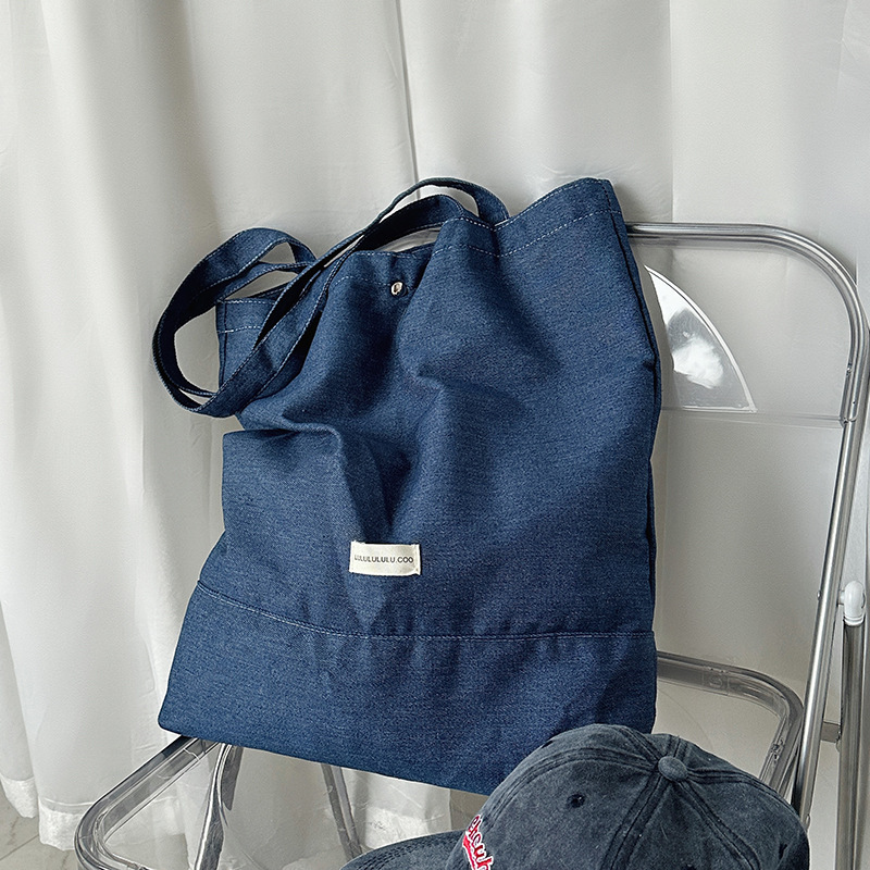 cloth label vertical korean jean bag light denim