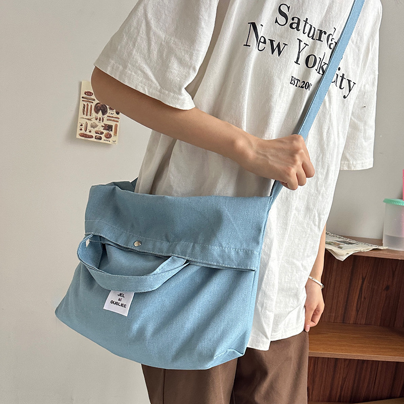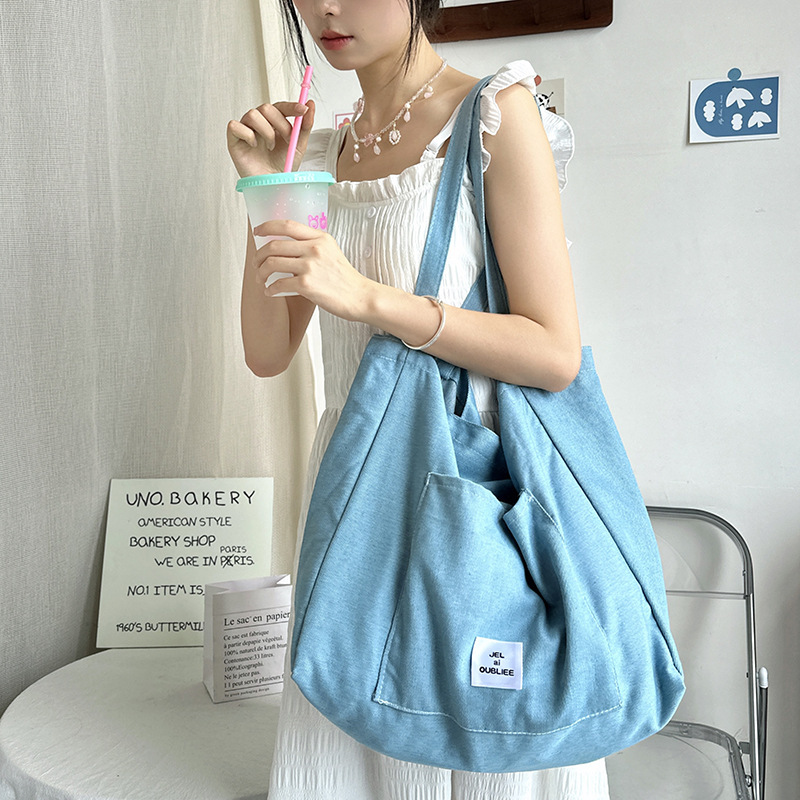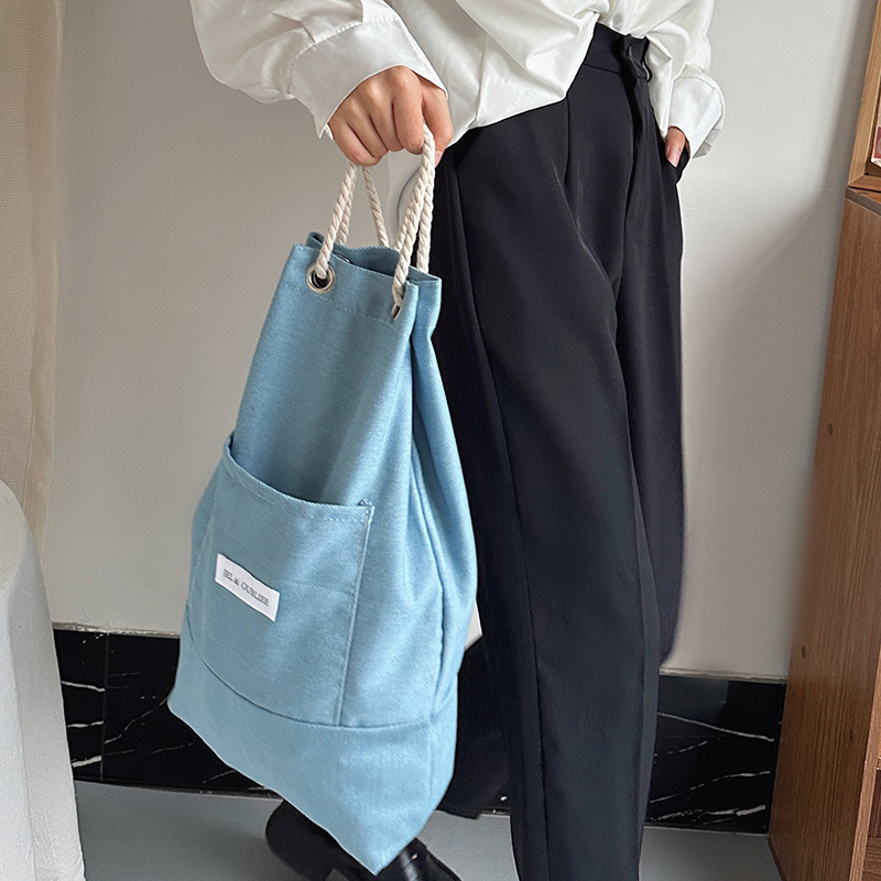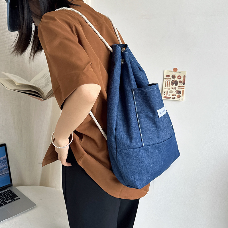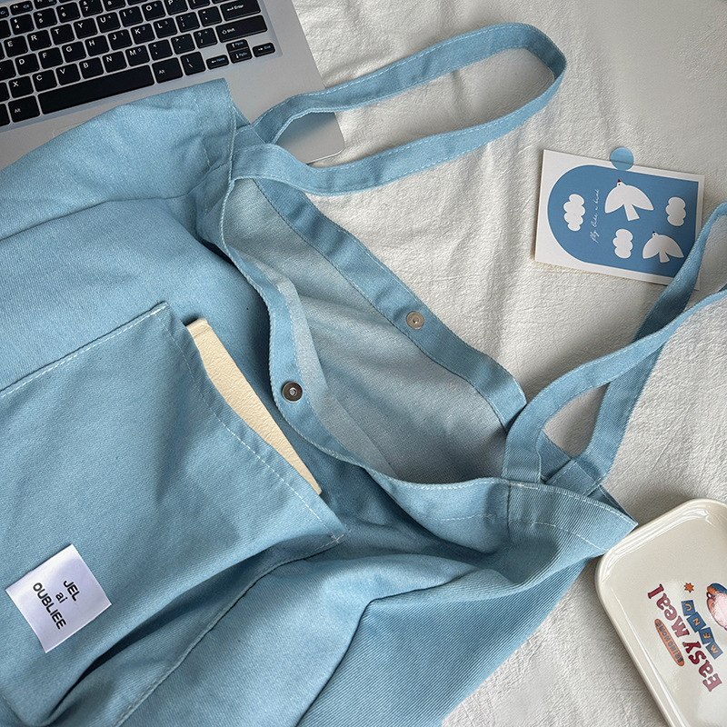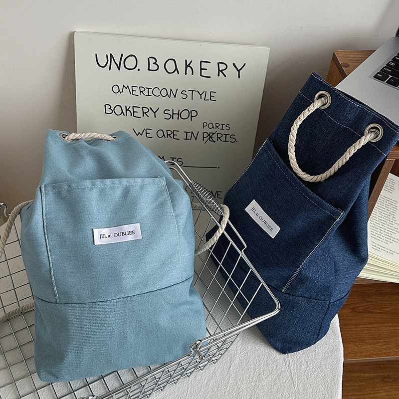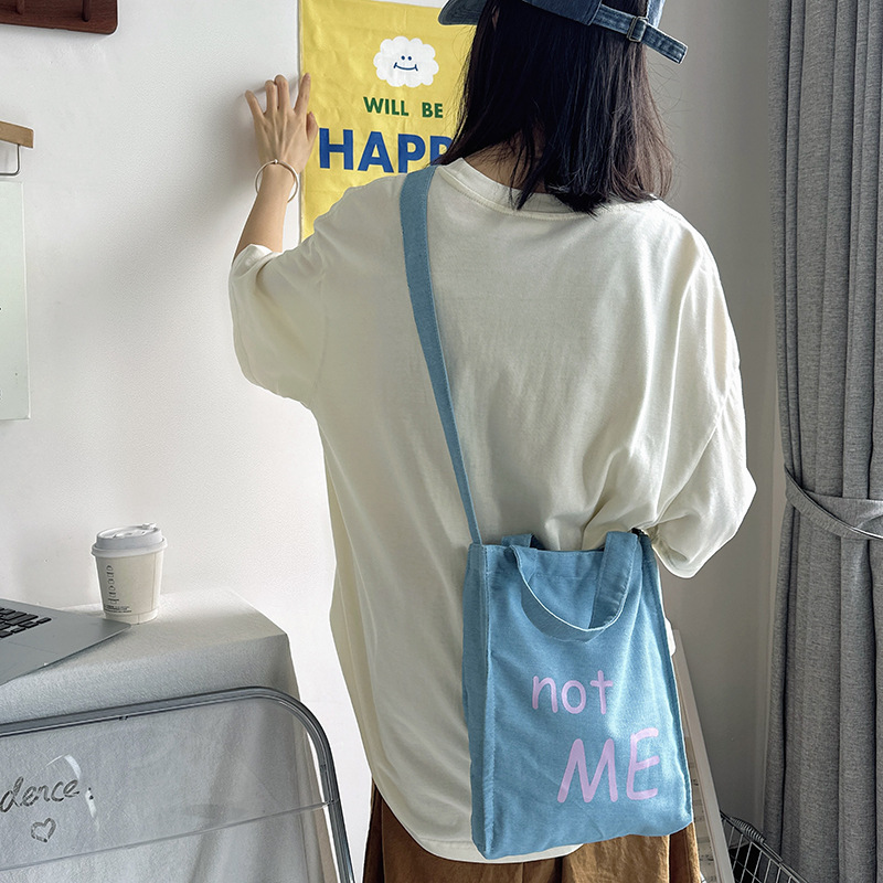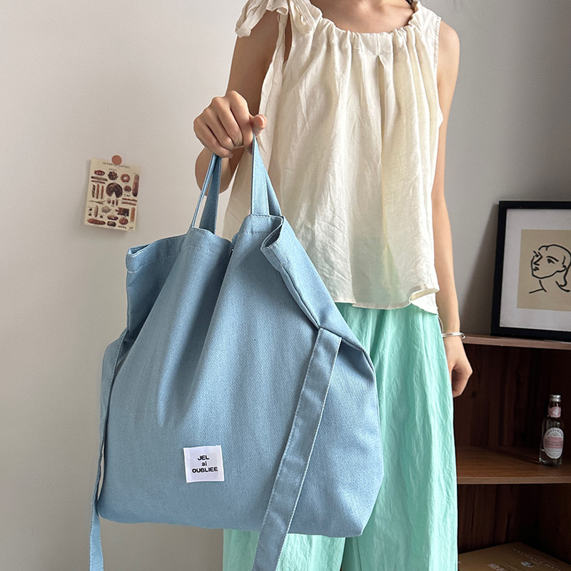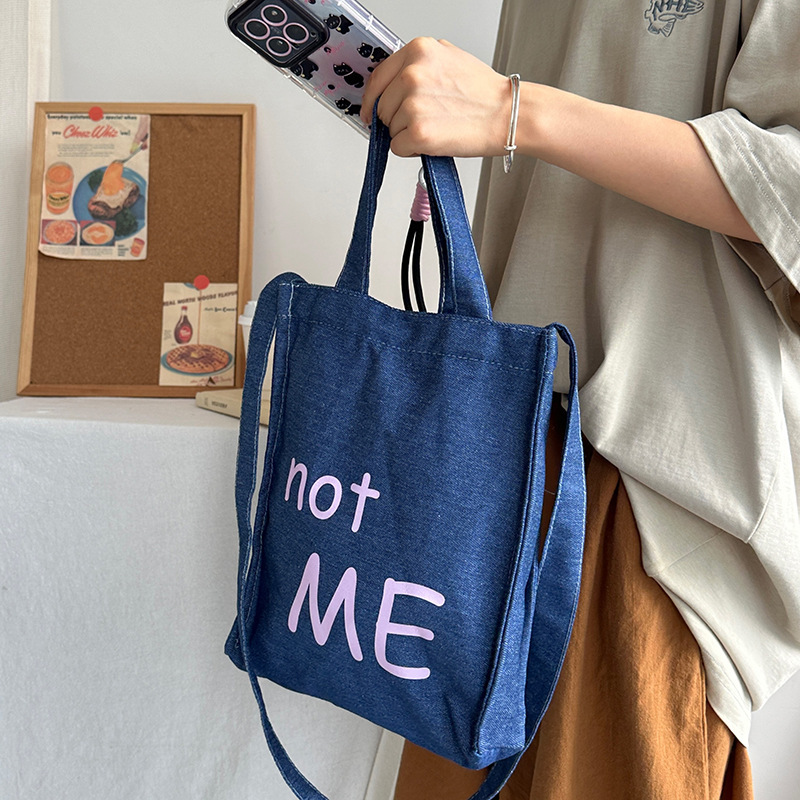cloth label vertical korean jean bag light denim