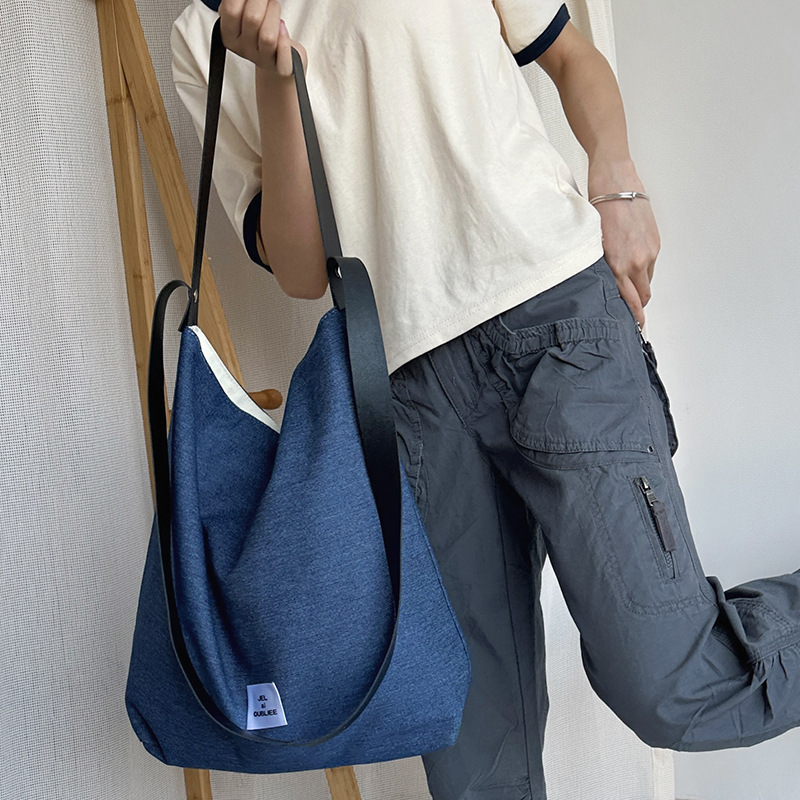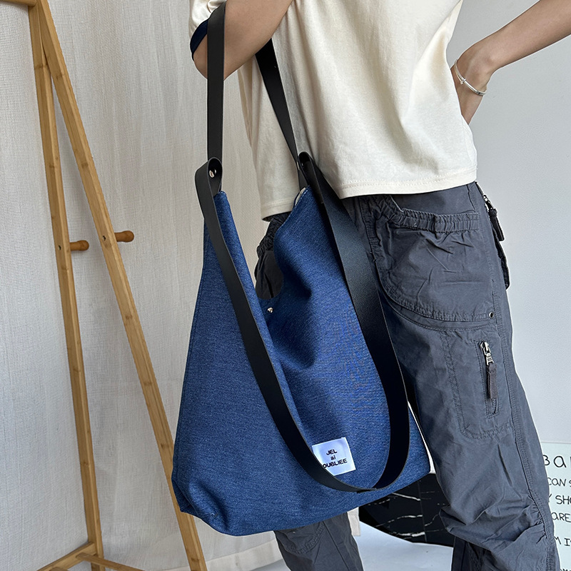 cloth label vertical korean jean bag dark denim