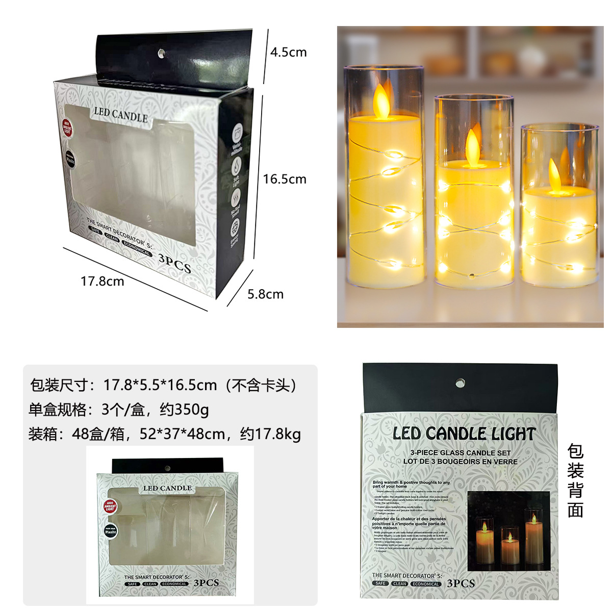 5.5-inch candle lamp, three-piece packaging