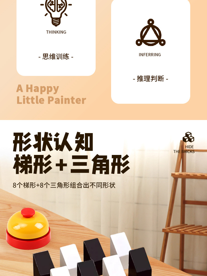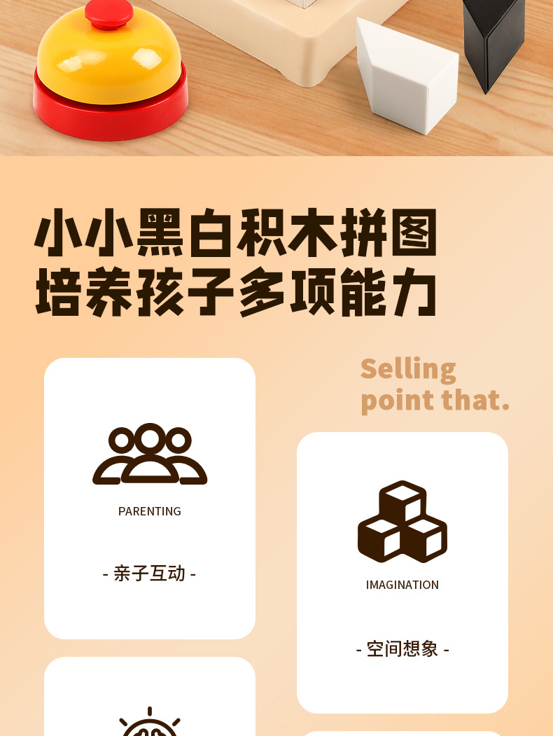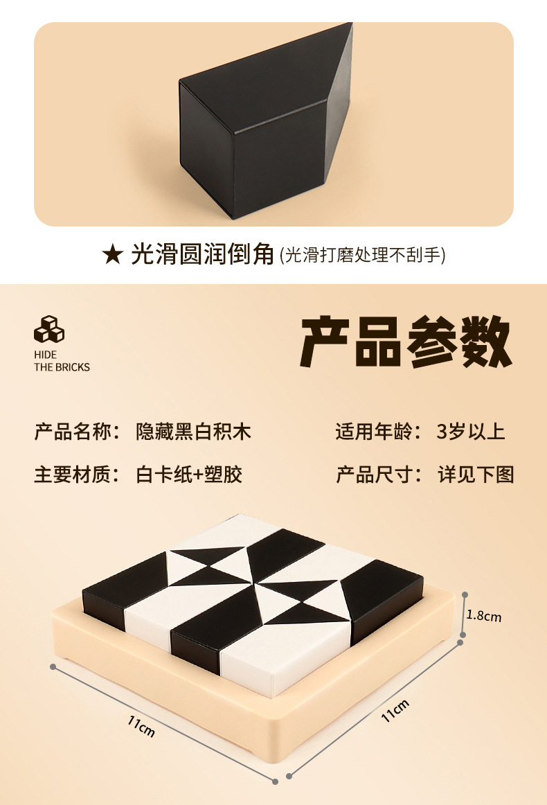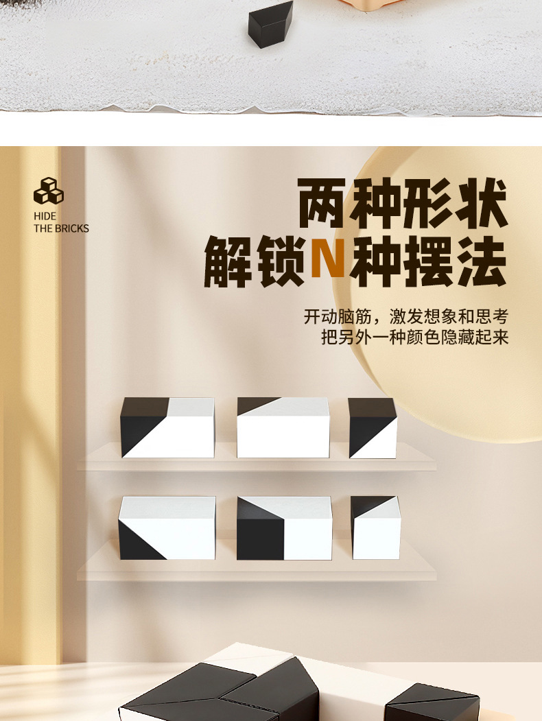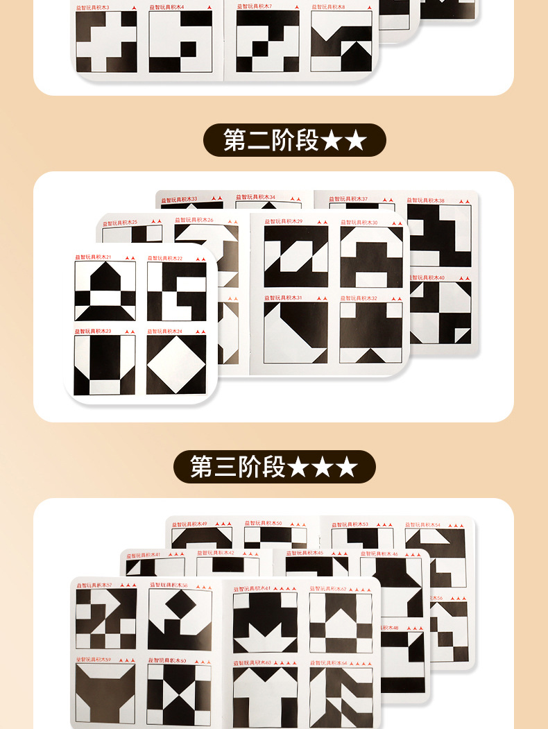 color box high-equipped double: 2 boxes of hidden black and white building blocks 80 levels + answer bell