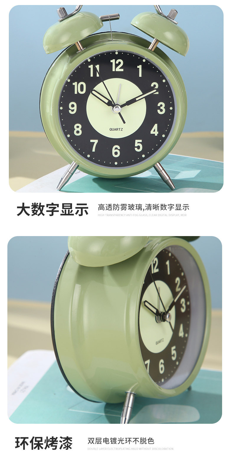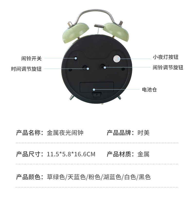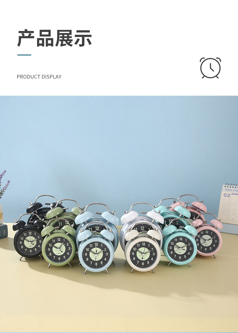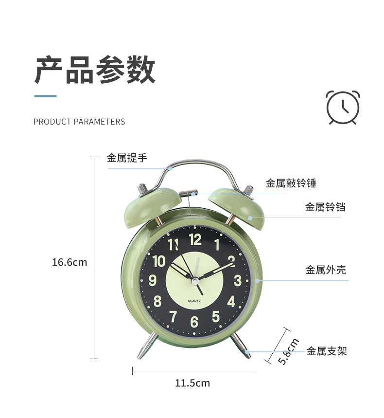 luminous alarm clock student only clock metal mute children for bedroom use bell alarm clock clock gift wholesale