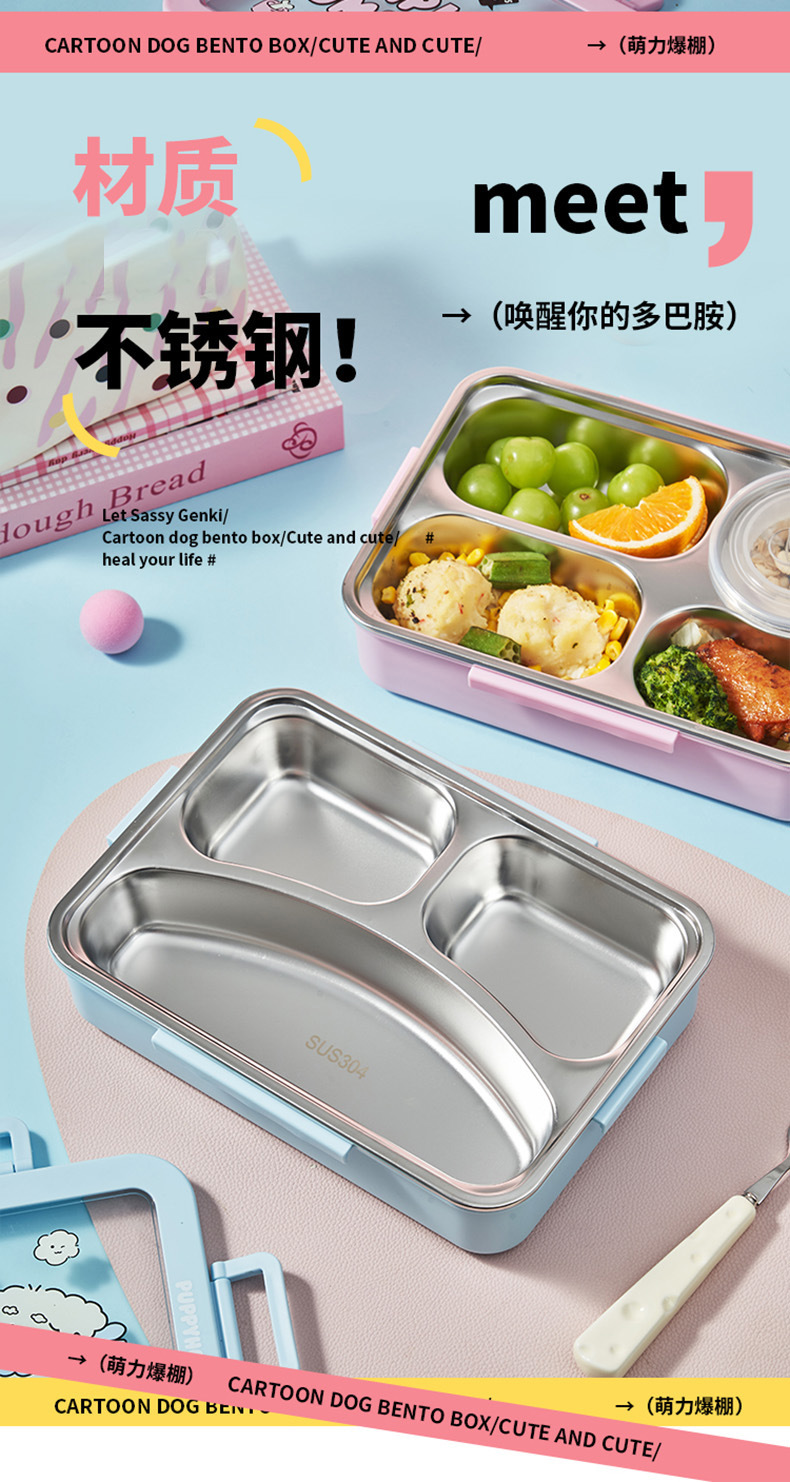 6322 cartoon dog lunch box tape soup bowl-pink