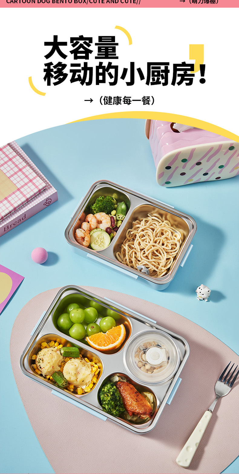 6322 cartoon dog lunch box tape soup bowl-blue