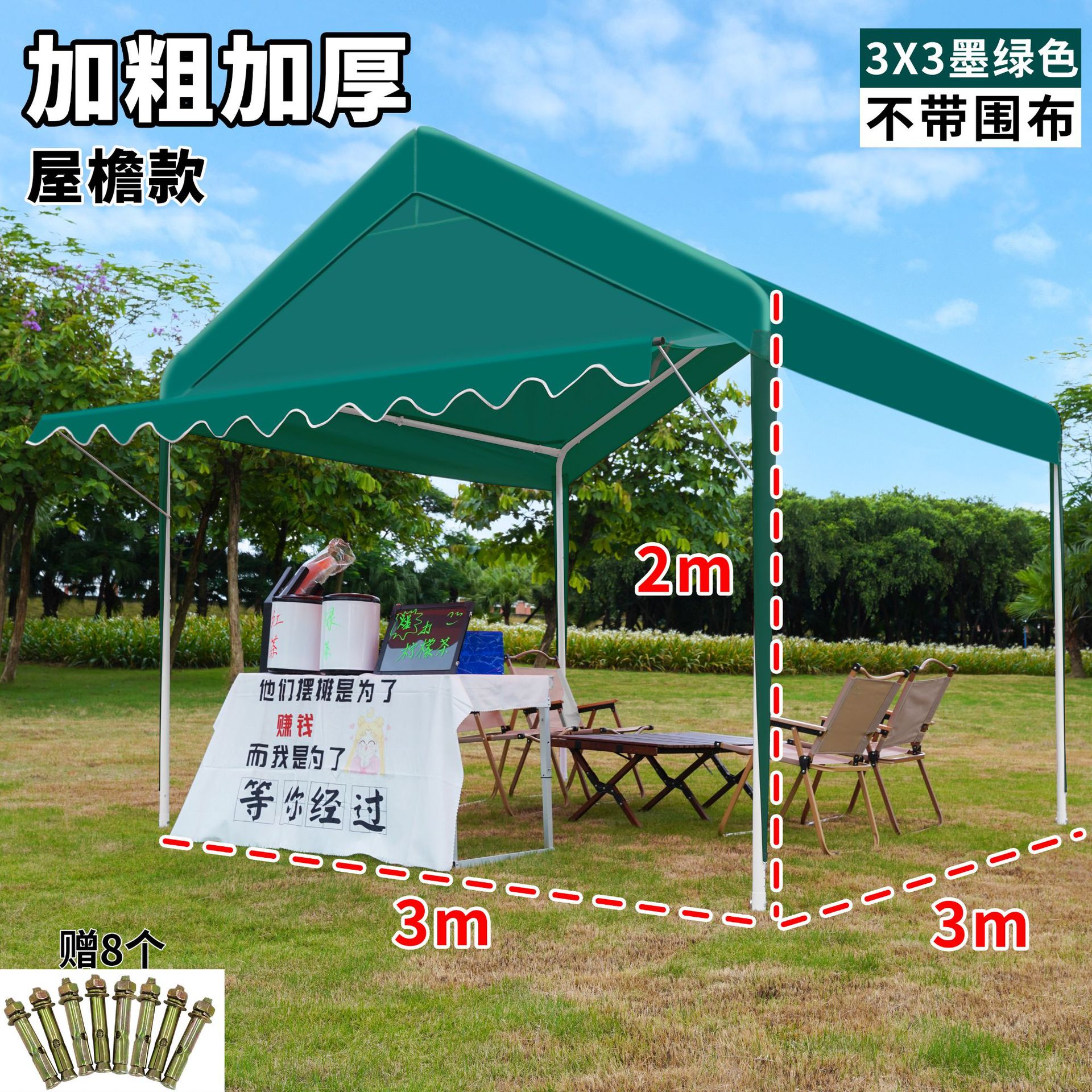 3x3 m +3-side window dark green stall shed [eaves] warranty for 3 years