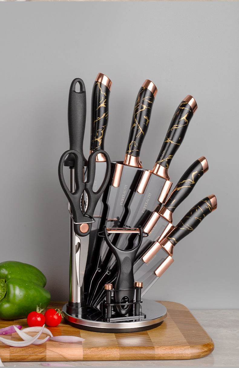 rotating seat double plating head marbling 9-piece set-black