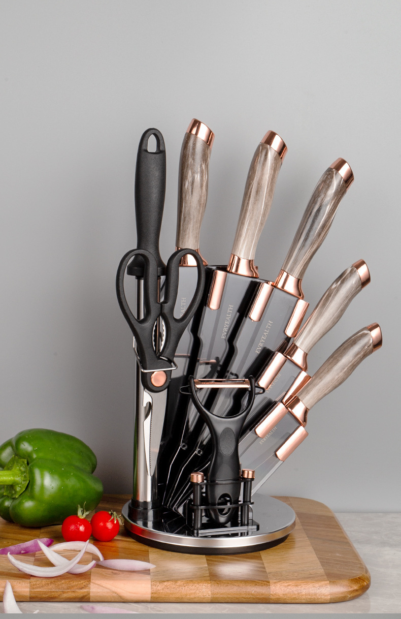 rotating seat double plating head marbling 9-piece set-brown