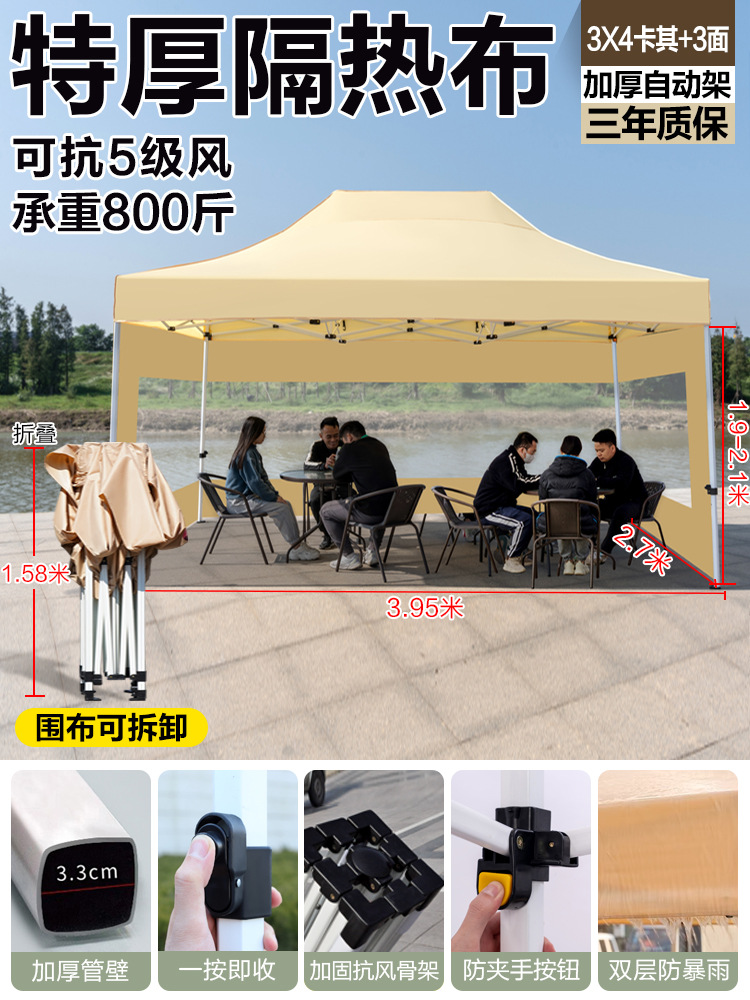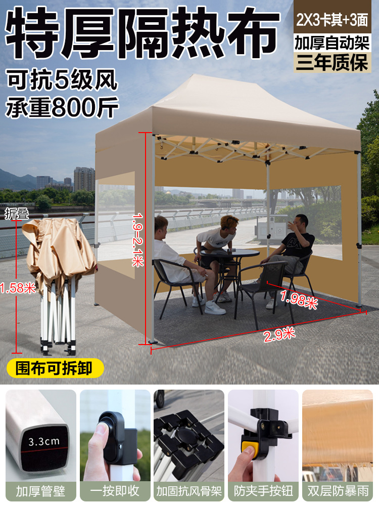 thickened automatic frame 3x3+3-side window protection cloth khaki