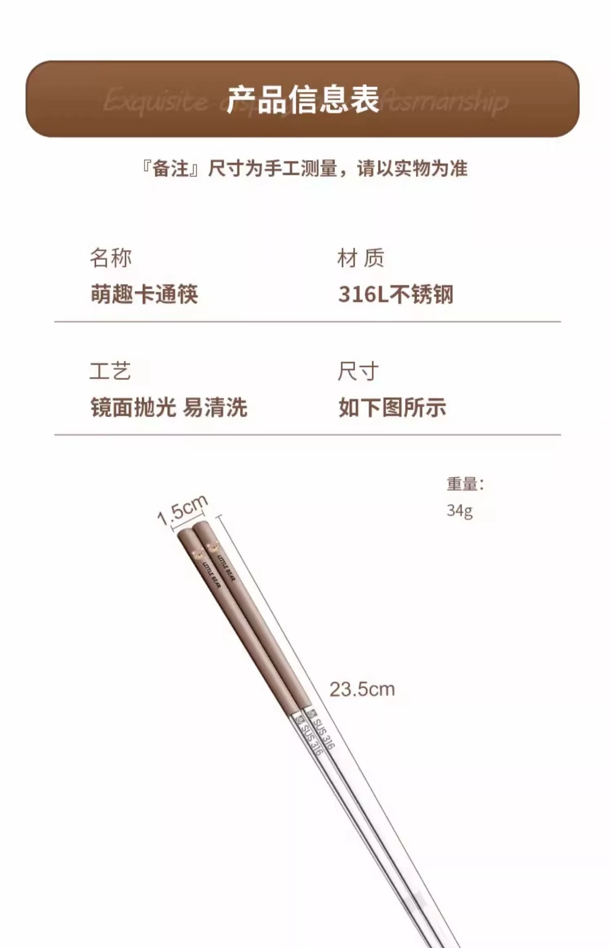 316 [children's style] bear chopsticks-brown