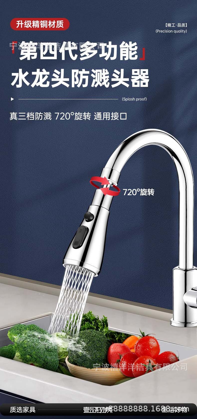 【枪灰色升级款】全铜接头+增压防溅+万向旋转