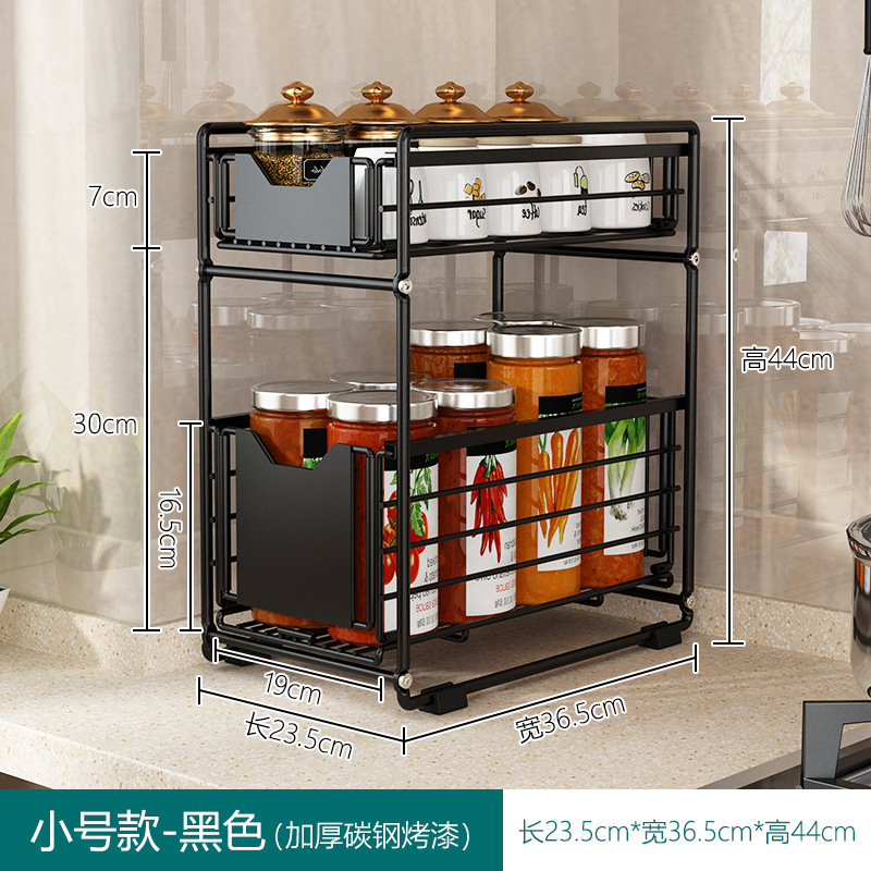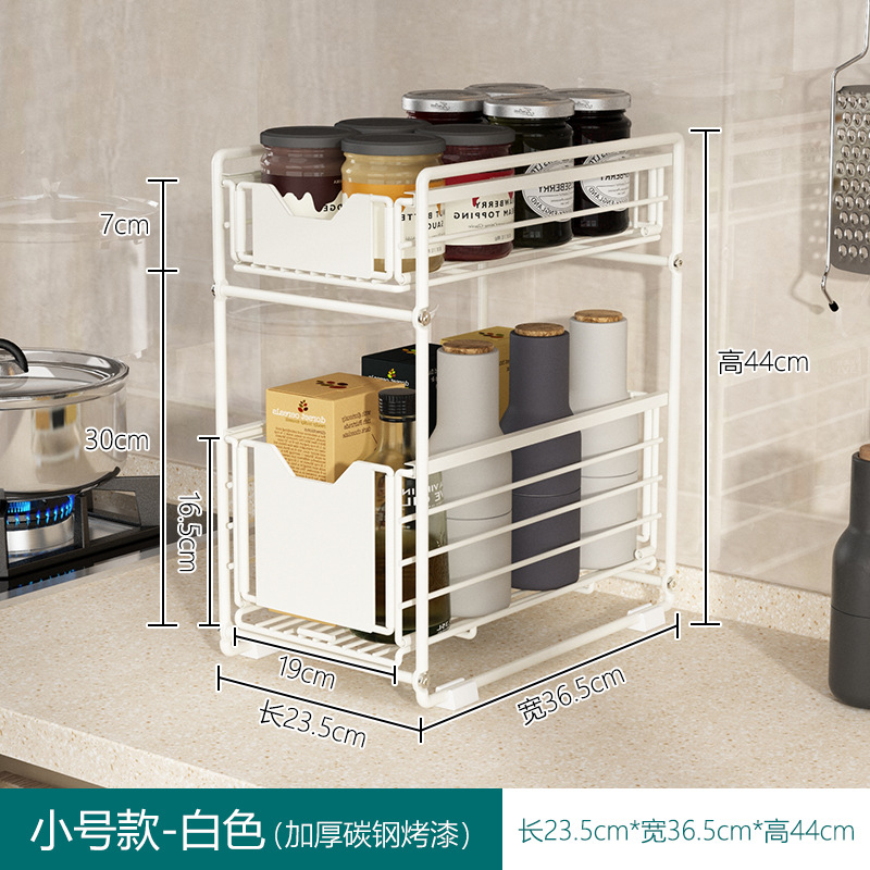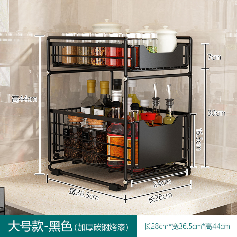 kitchen sink rack drawer-type iron storage rack floor-type push basket separated seasoning organizing rack