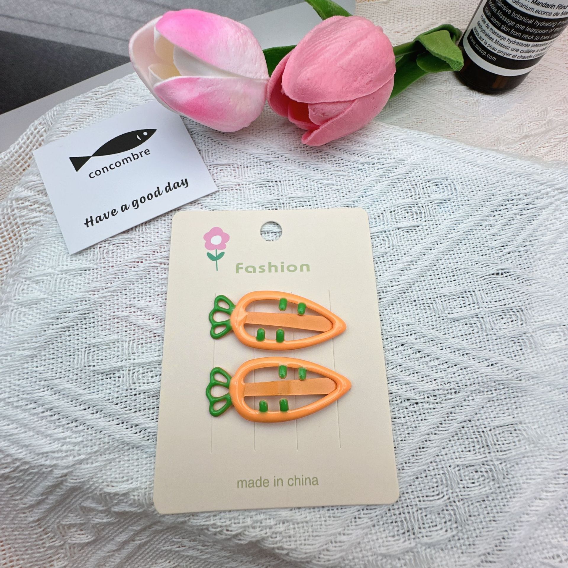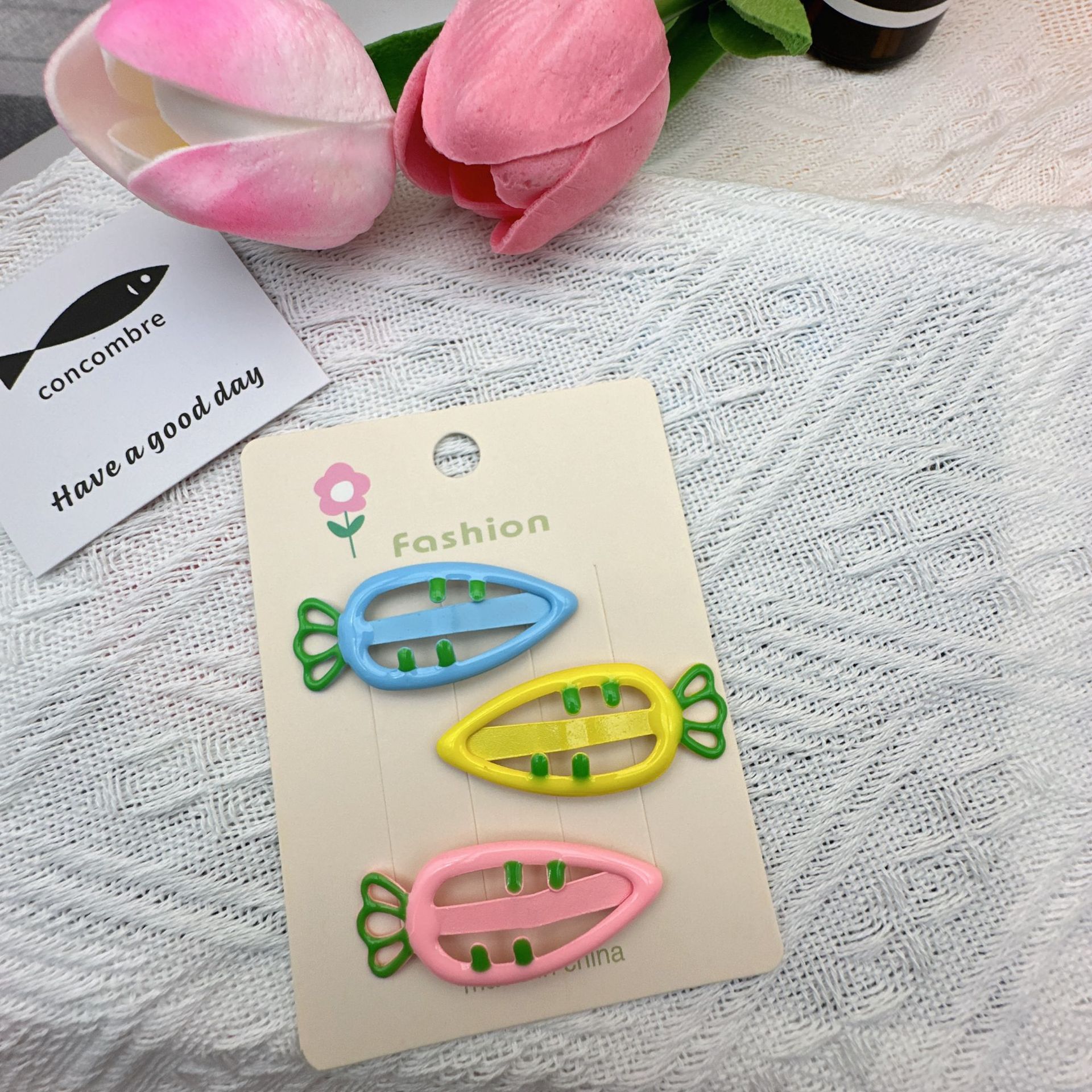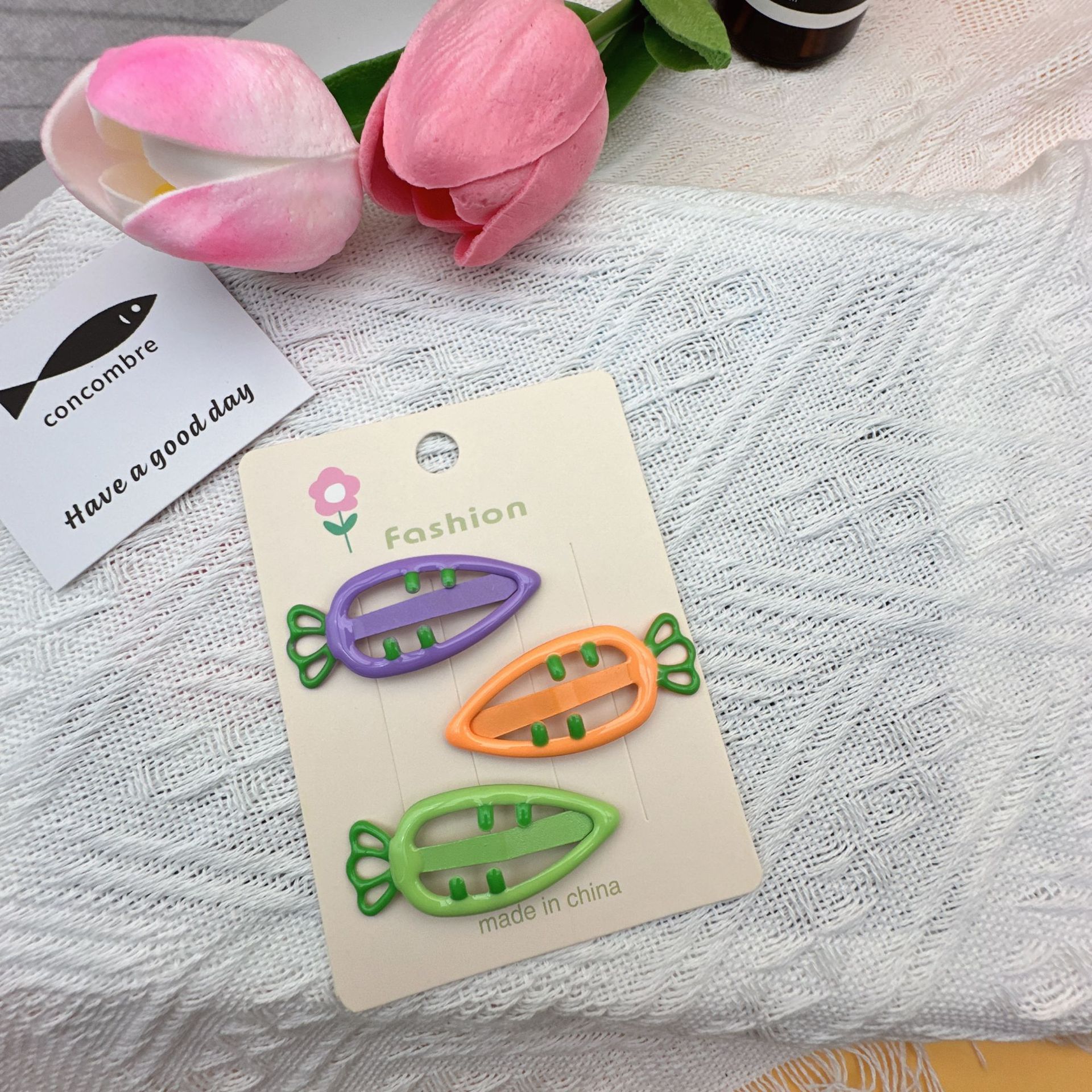 three-color carrot barrettes 1 (with cardboard)