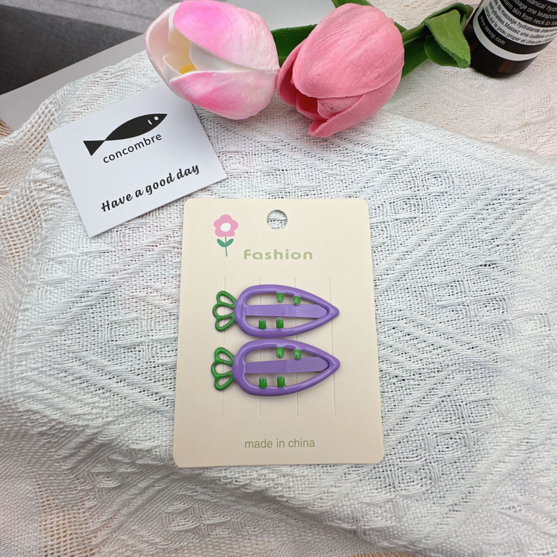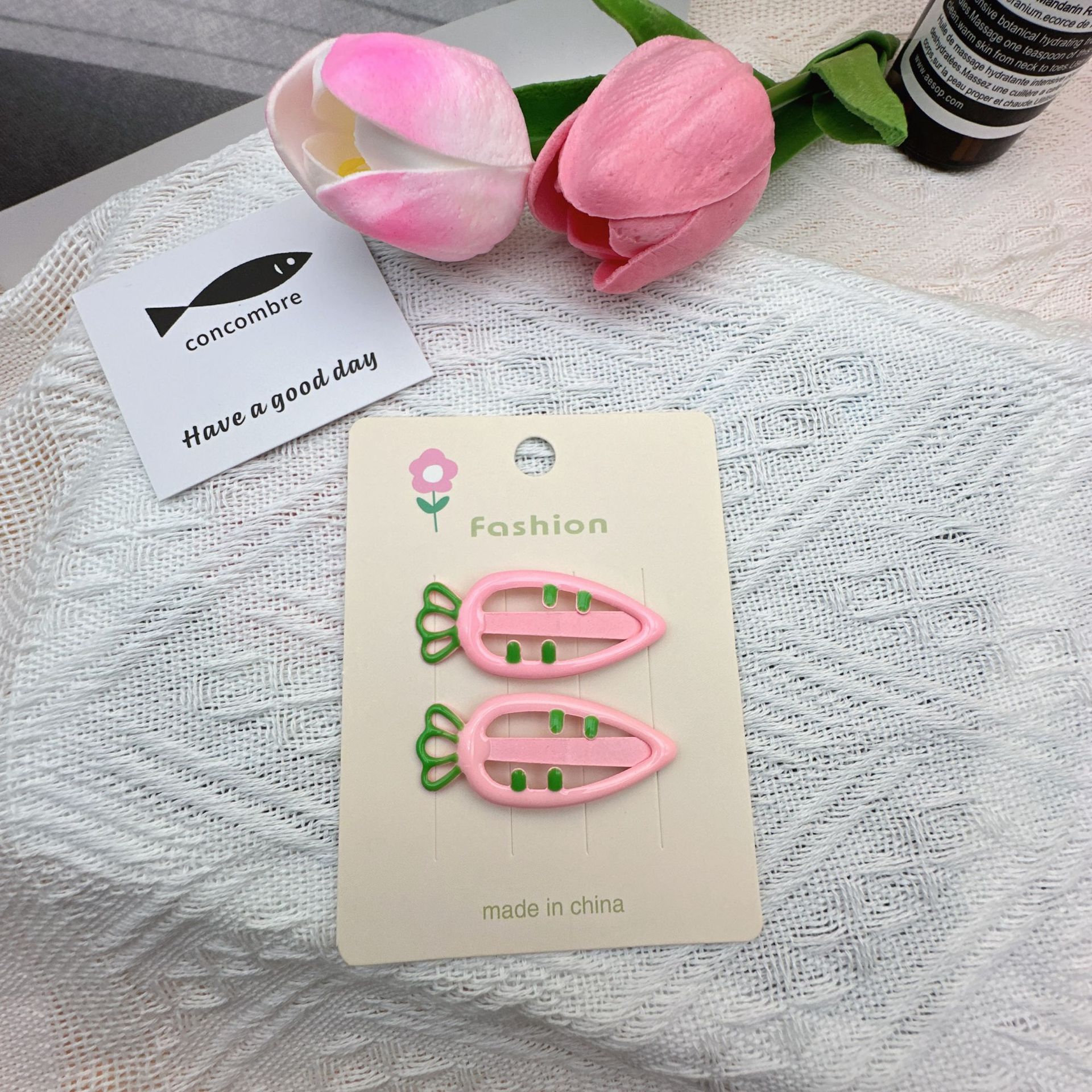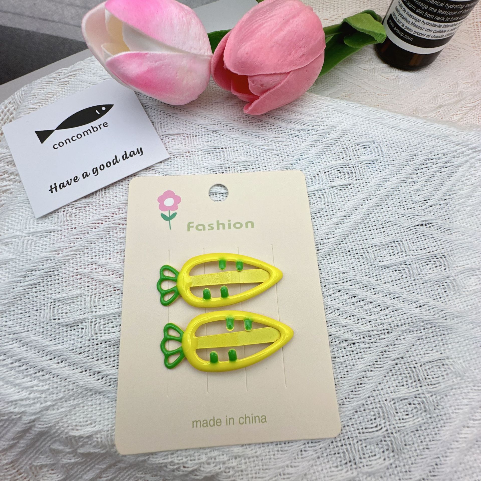 three-color carrot barrettes 1 (with cardboard)