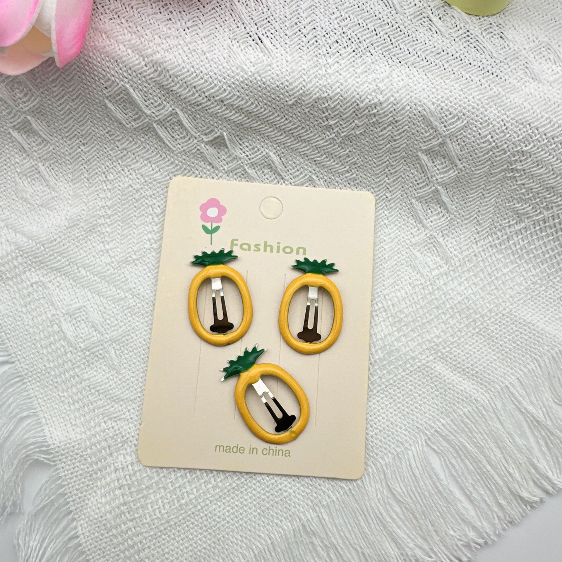 yellow pineapple barrettes (with cardboard)