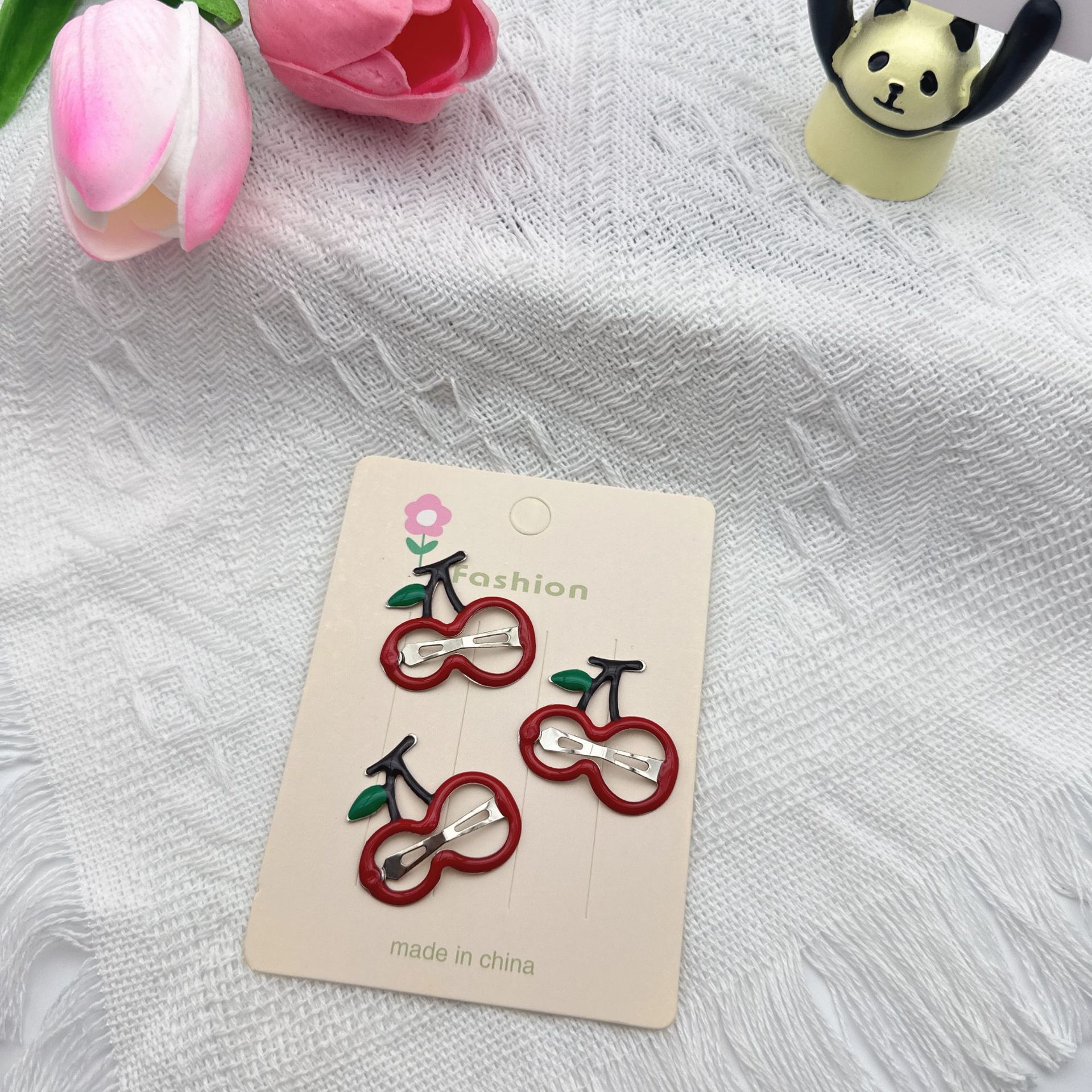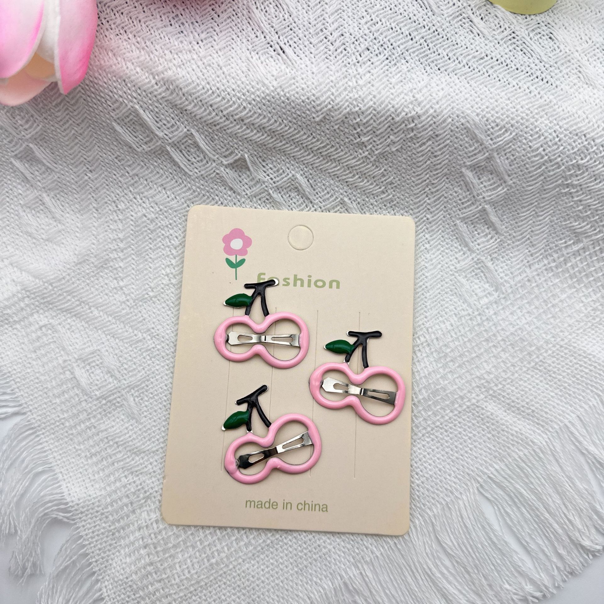 pink cherry barrettes (with cardboard)