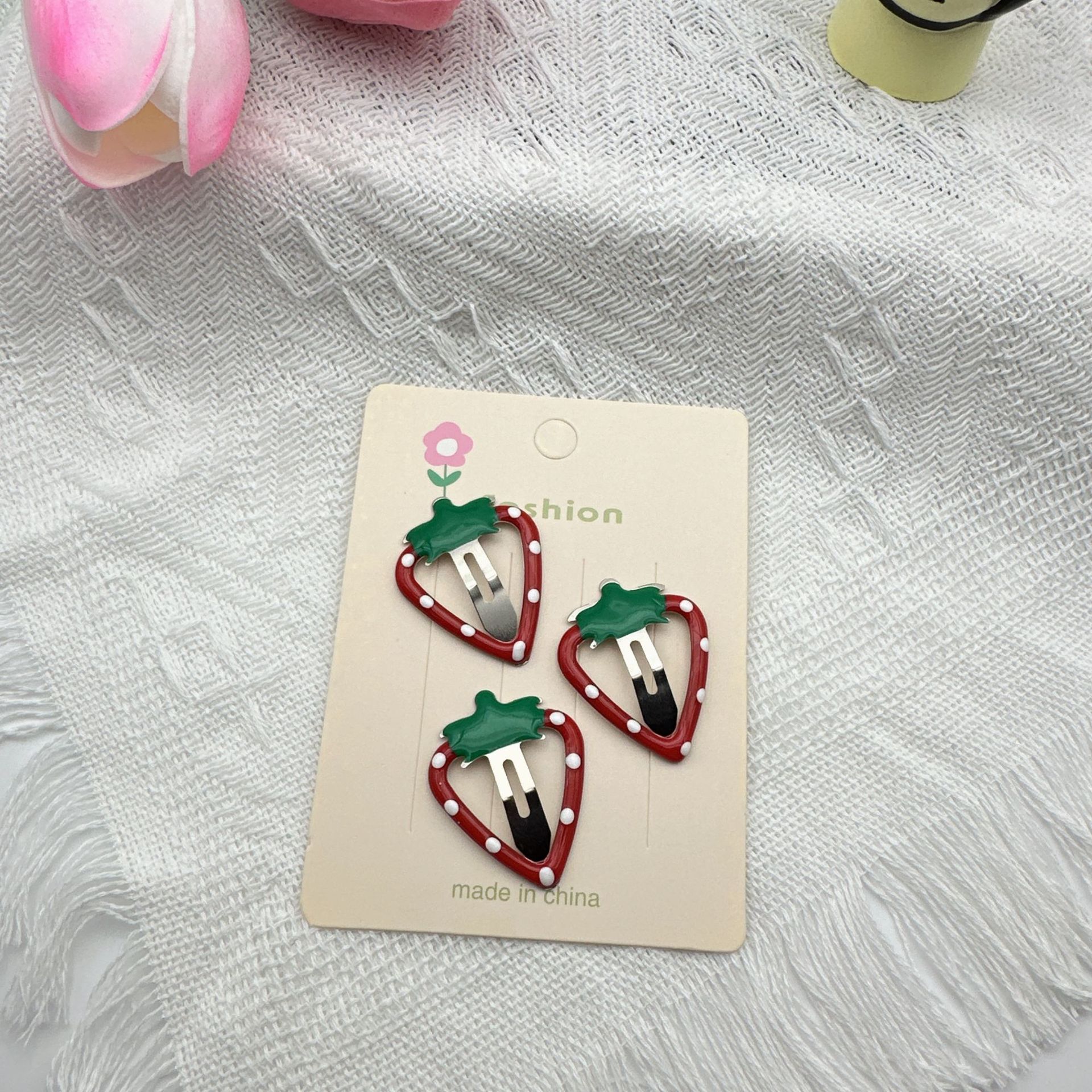 red strawberry barrettes (with cardboard)