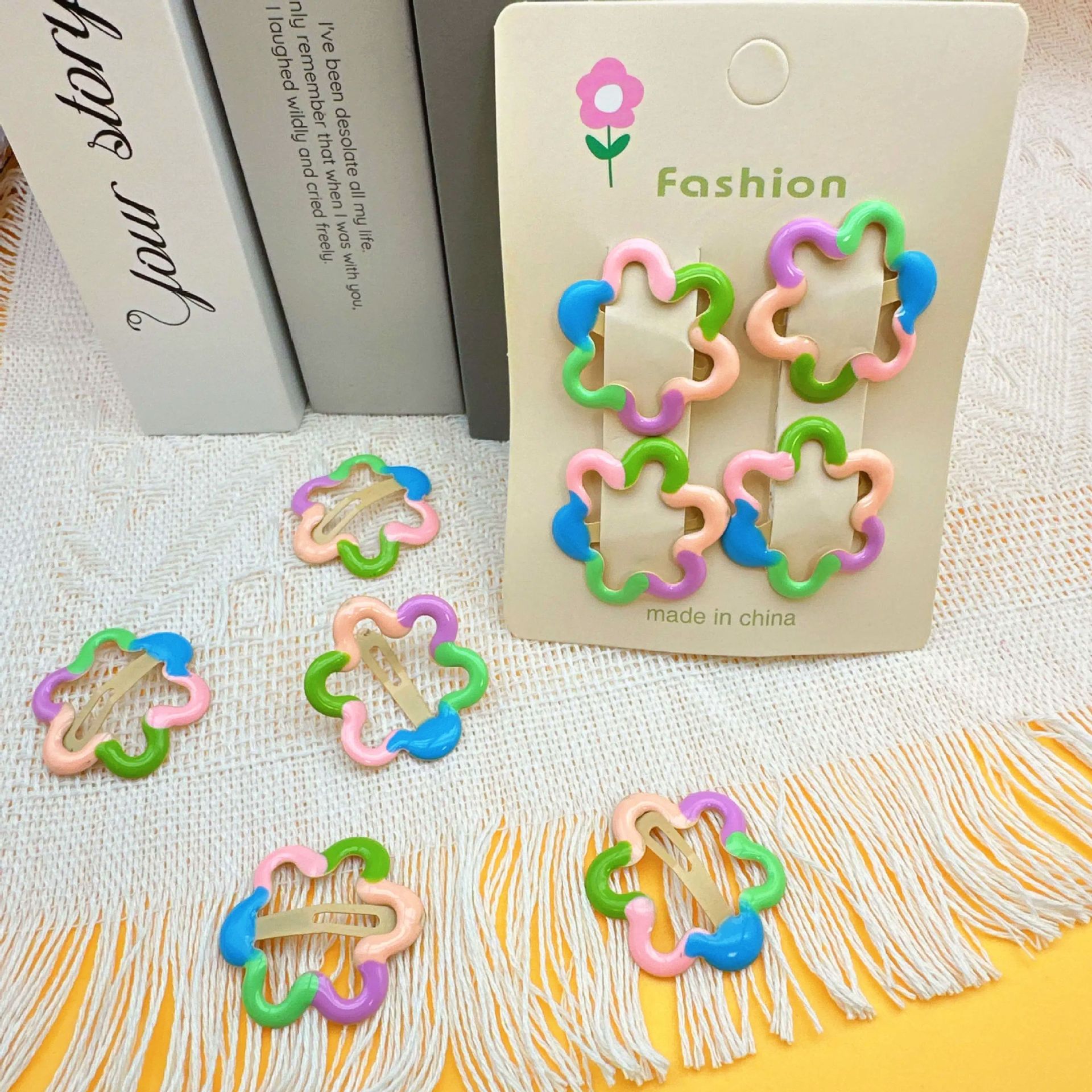 six-color flower water drops barrettes 4 (with cardboard)