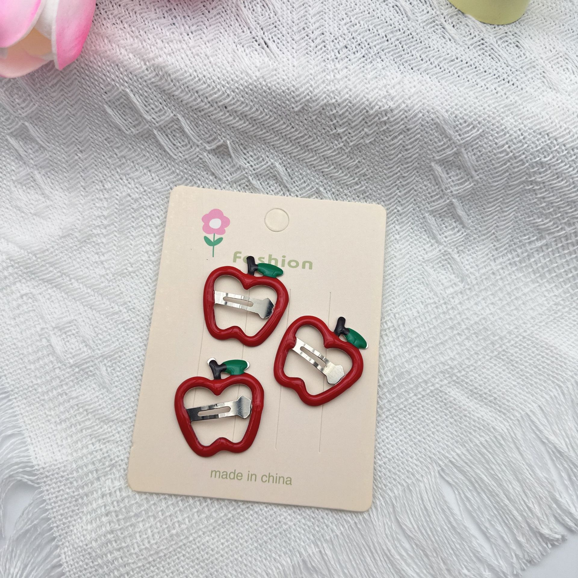 red apple barrettes (with cardboard)