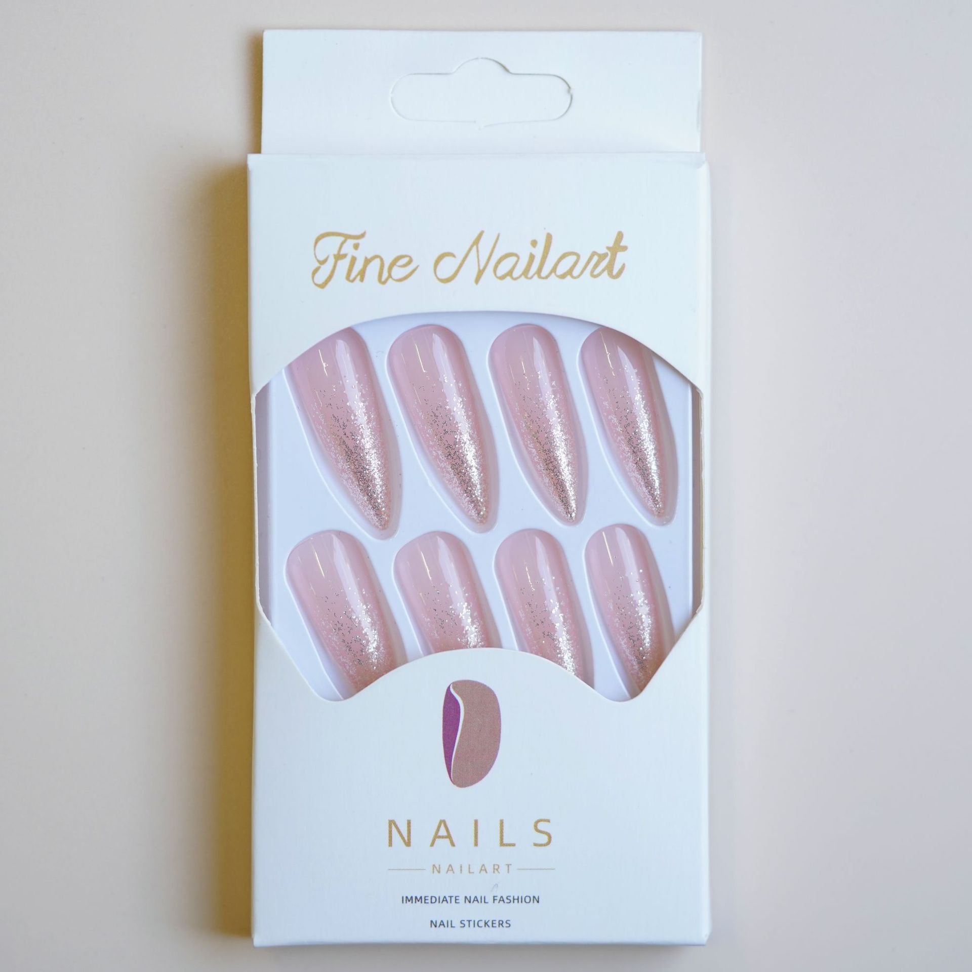 wm-87 fingertip broken flash fake nails elegant glitter cross-border wear armor nail tip nail stickers 24 pieces nail tip wholesale