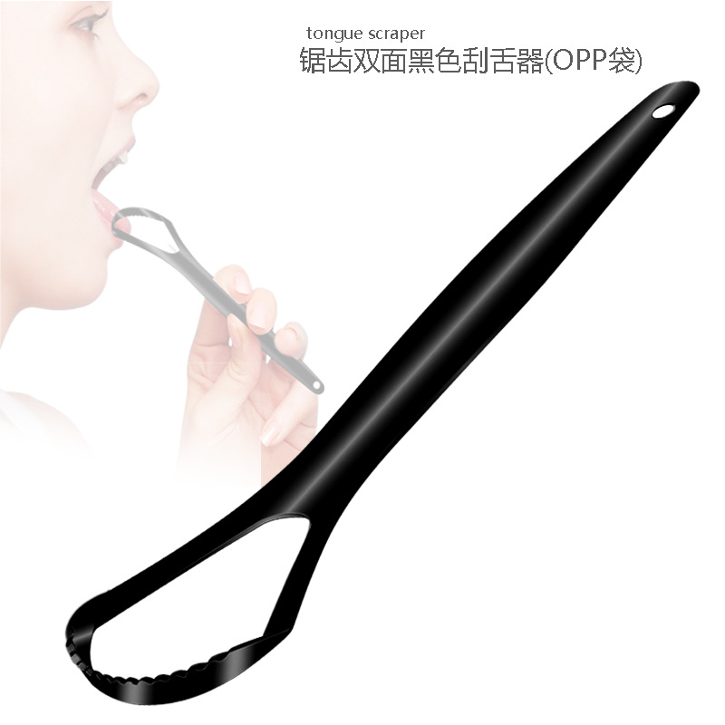 serrated double-sided black tongue scraper (opp bag)