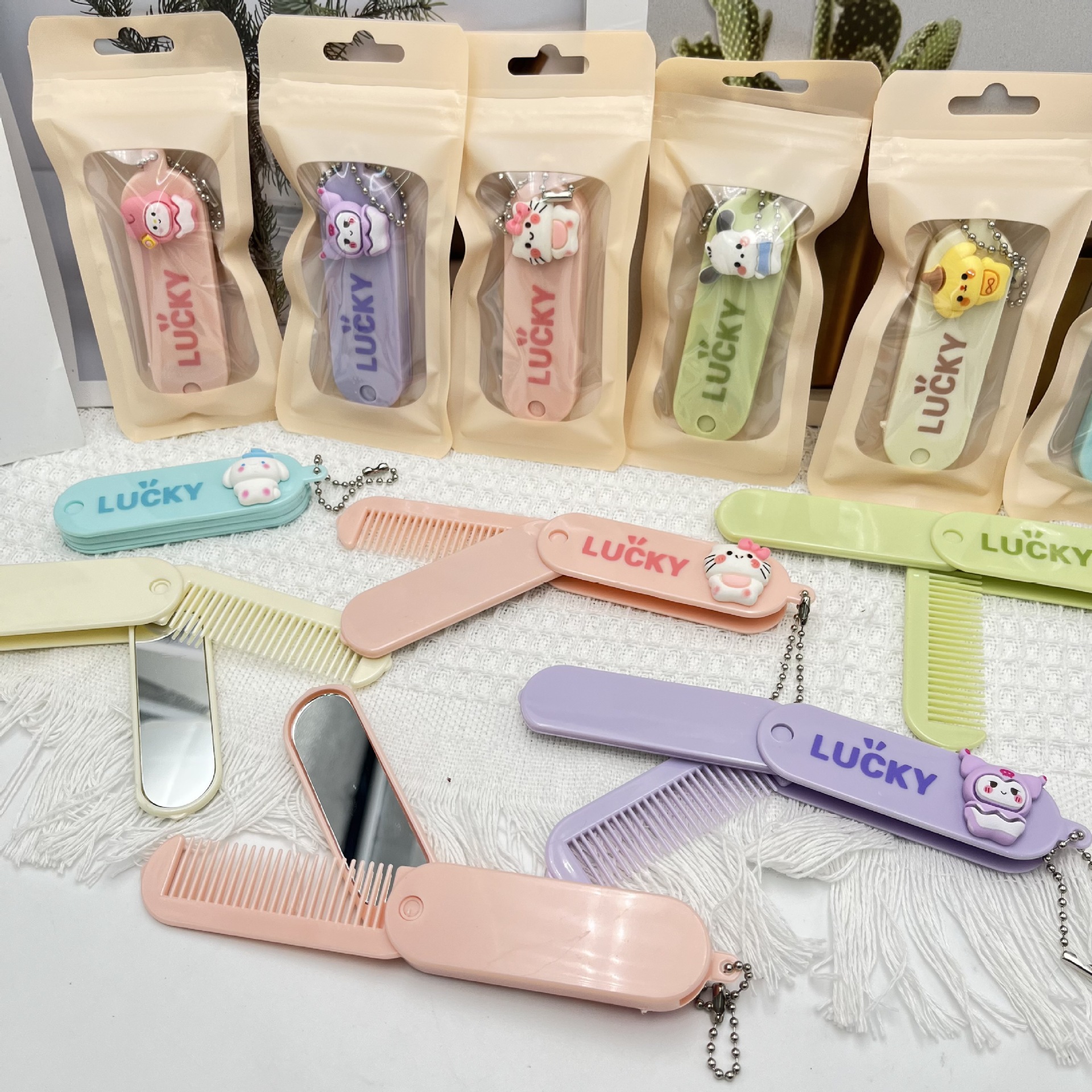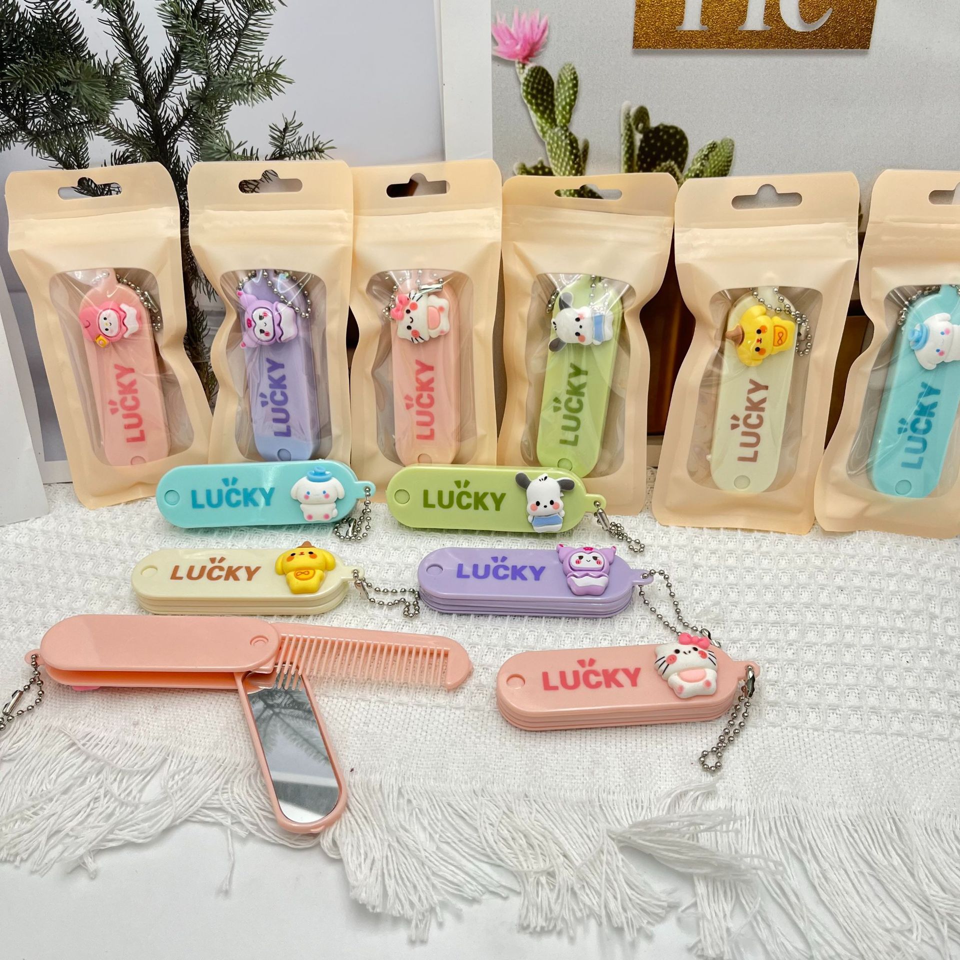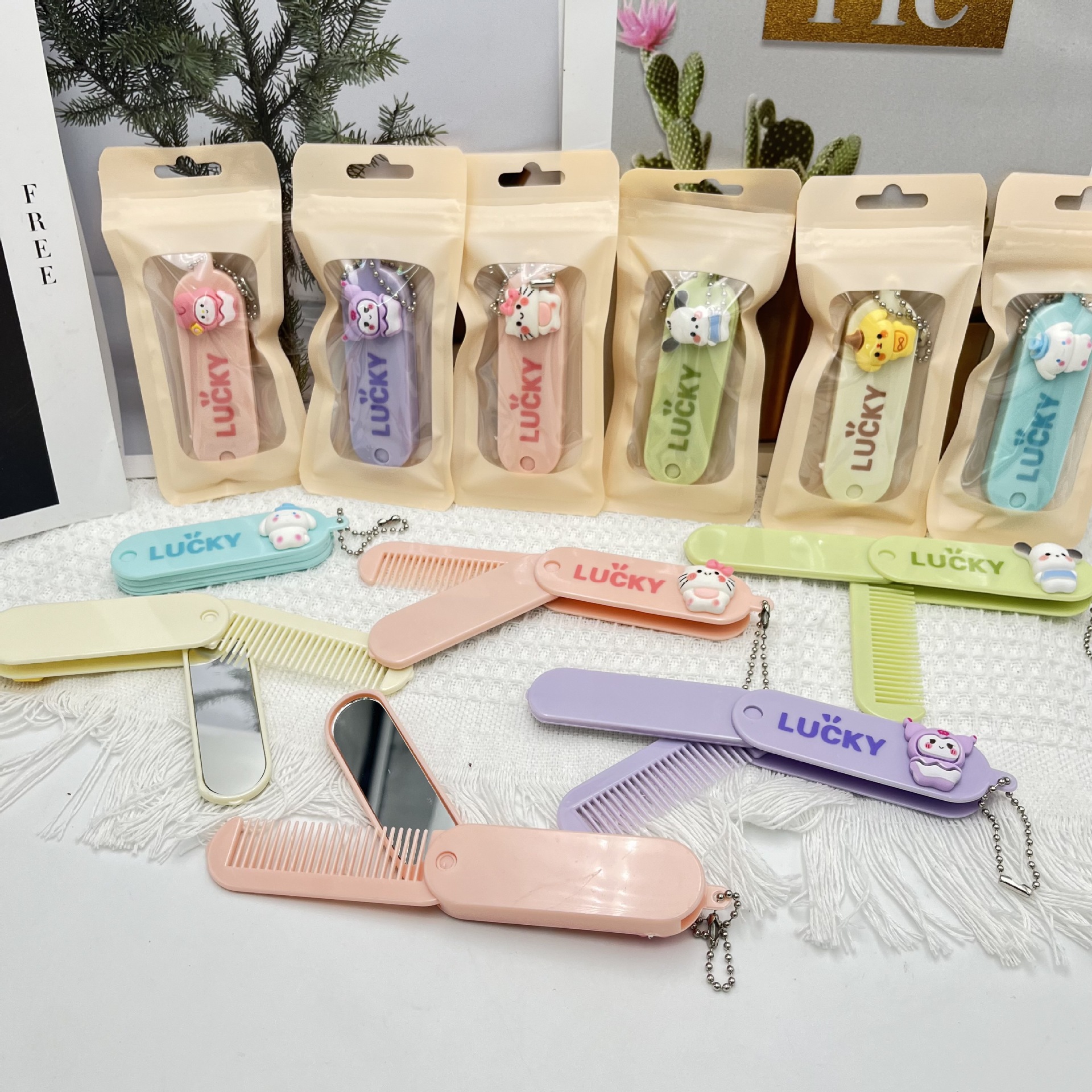 sanrio clow m patch folding comb daozai-shaped plastic folding comb mirror carrying case pendant makeup mirror