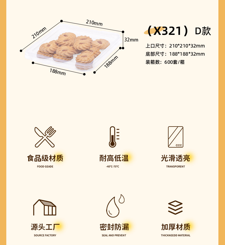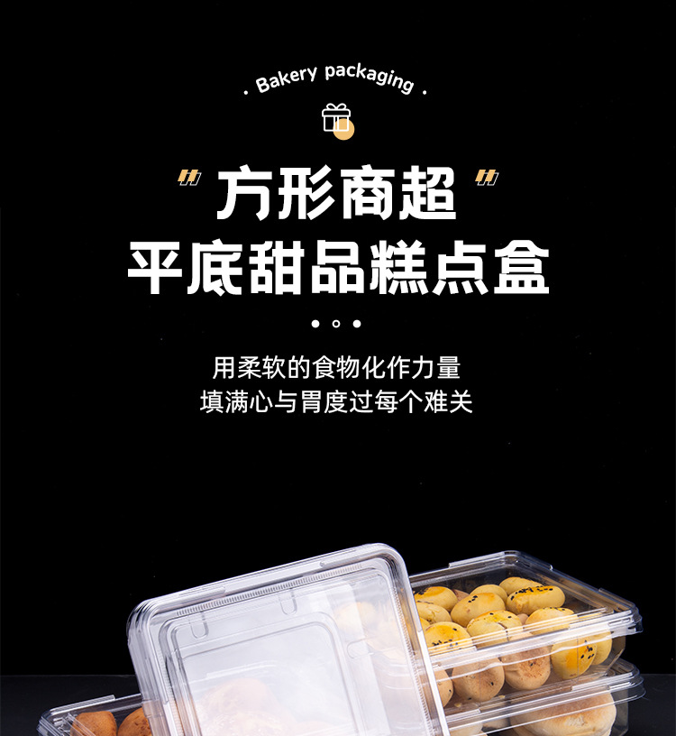 square dessert box disposable transparent plastic sealed flat box dessert pastry bulk food supermarket fruit and vegetable box