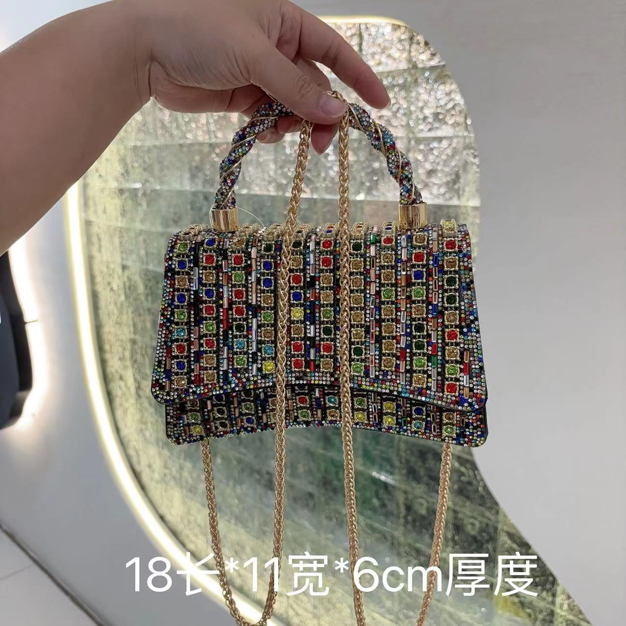 Special-Interest Design Diamond Square Pouch Women's New Fashion and Fully-Jewelled Dionysian Cross-Body Bag Shoulder Crossbody Underarm Bag Fashion