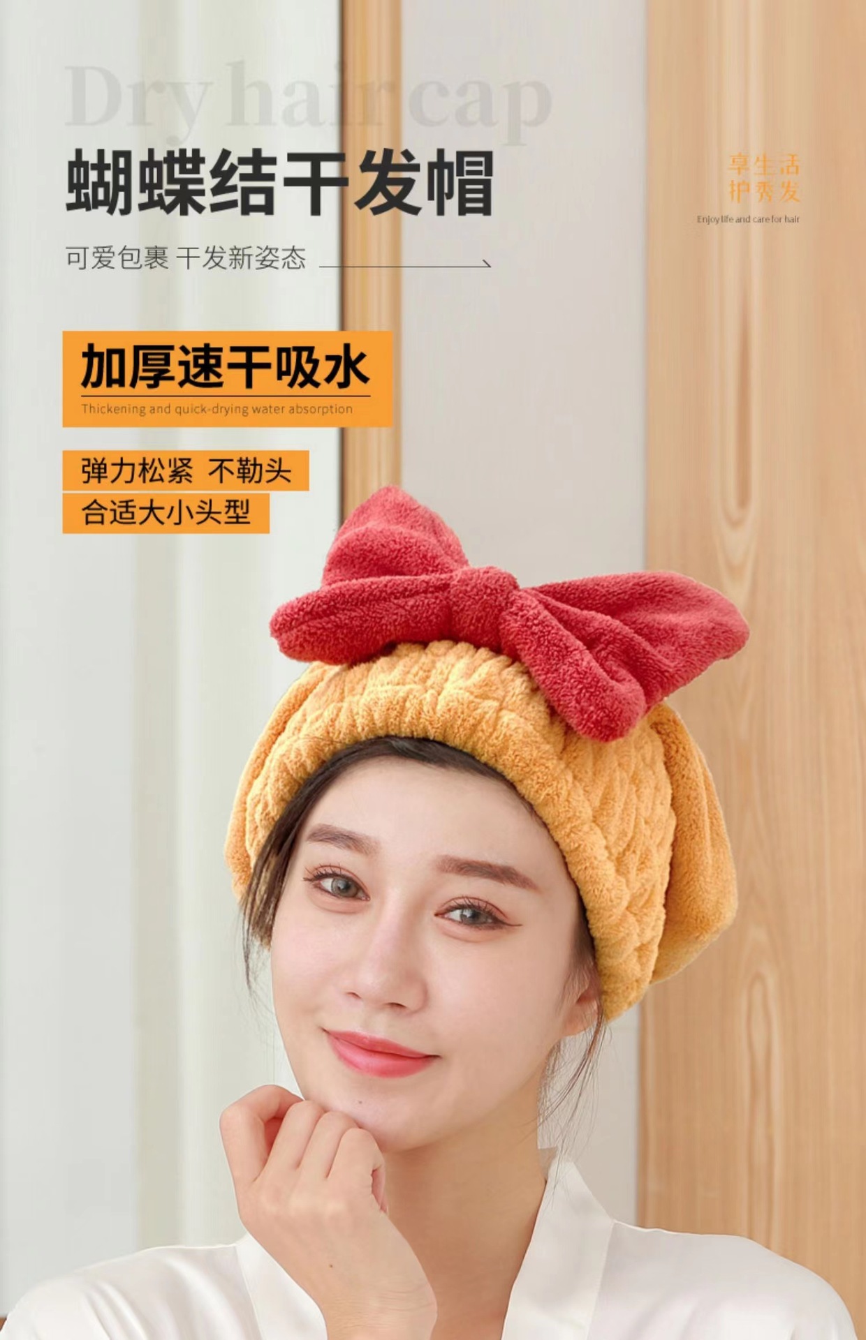 new coral fleece bow hair drying hat cute princess hat thick water-absorbing quick-drying shower cap hair wiping towel
