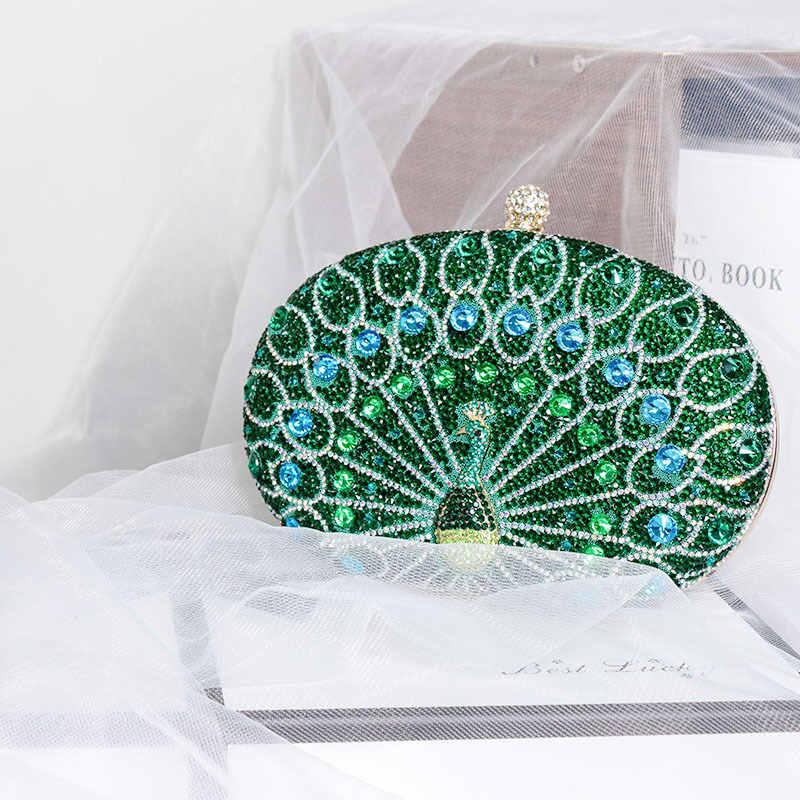 new peacock diamond evening bag cross-border european and american retro style party bag black high-end dress garment bag