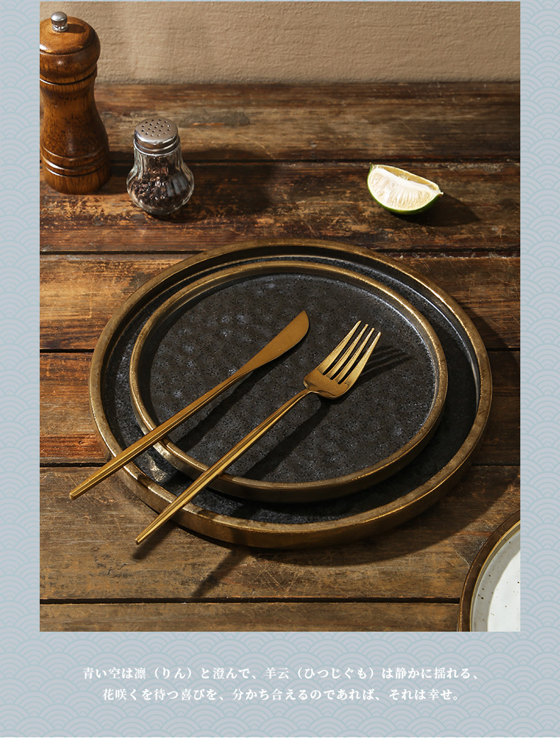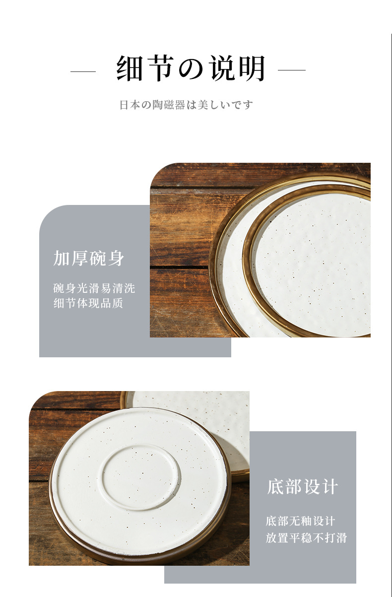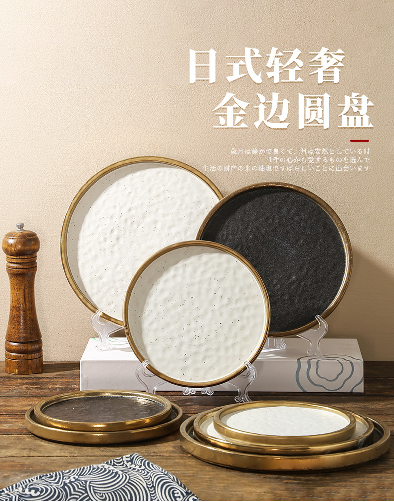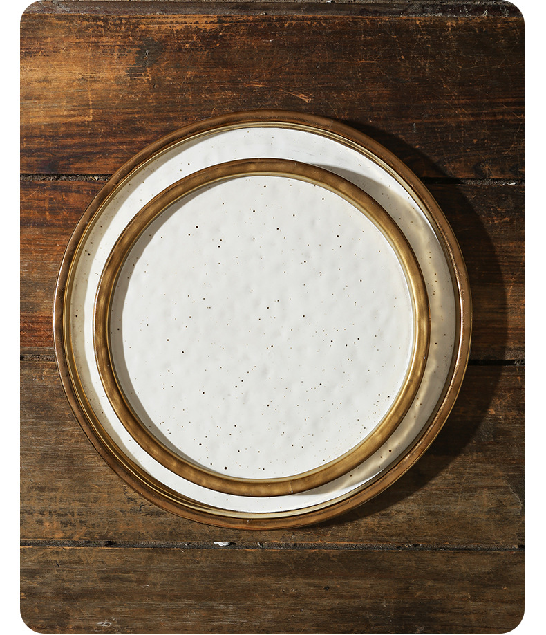 cross-border gold-plated ceramic plate flat plate shallow plate pasta western food plate steak plate household dinner plate light luxury commercial tray