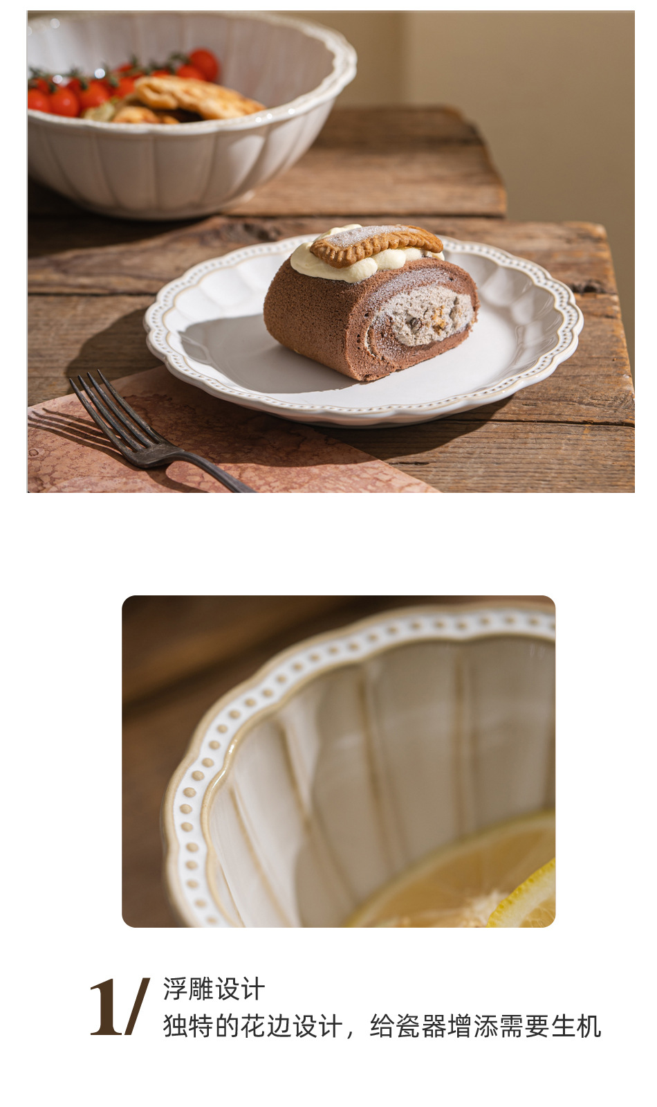 french yunbei tableware suit embossed ceramic bowl plate household dinner plate household minimalist kiln baked wholesale dim sum plate