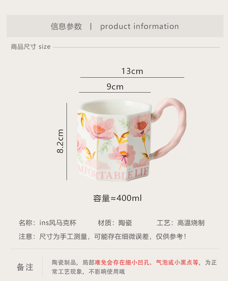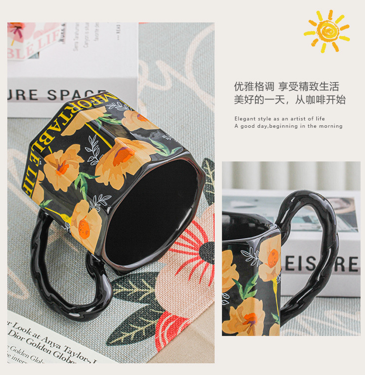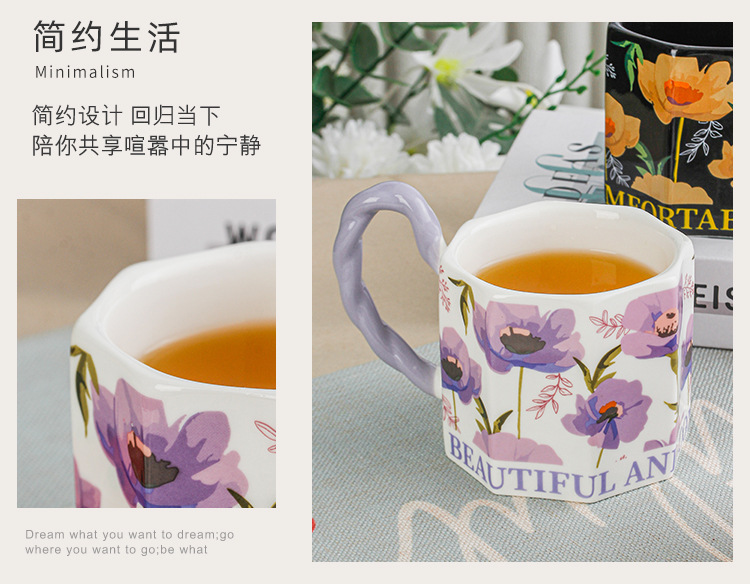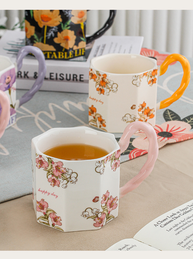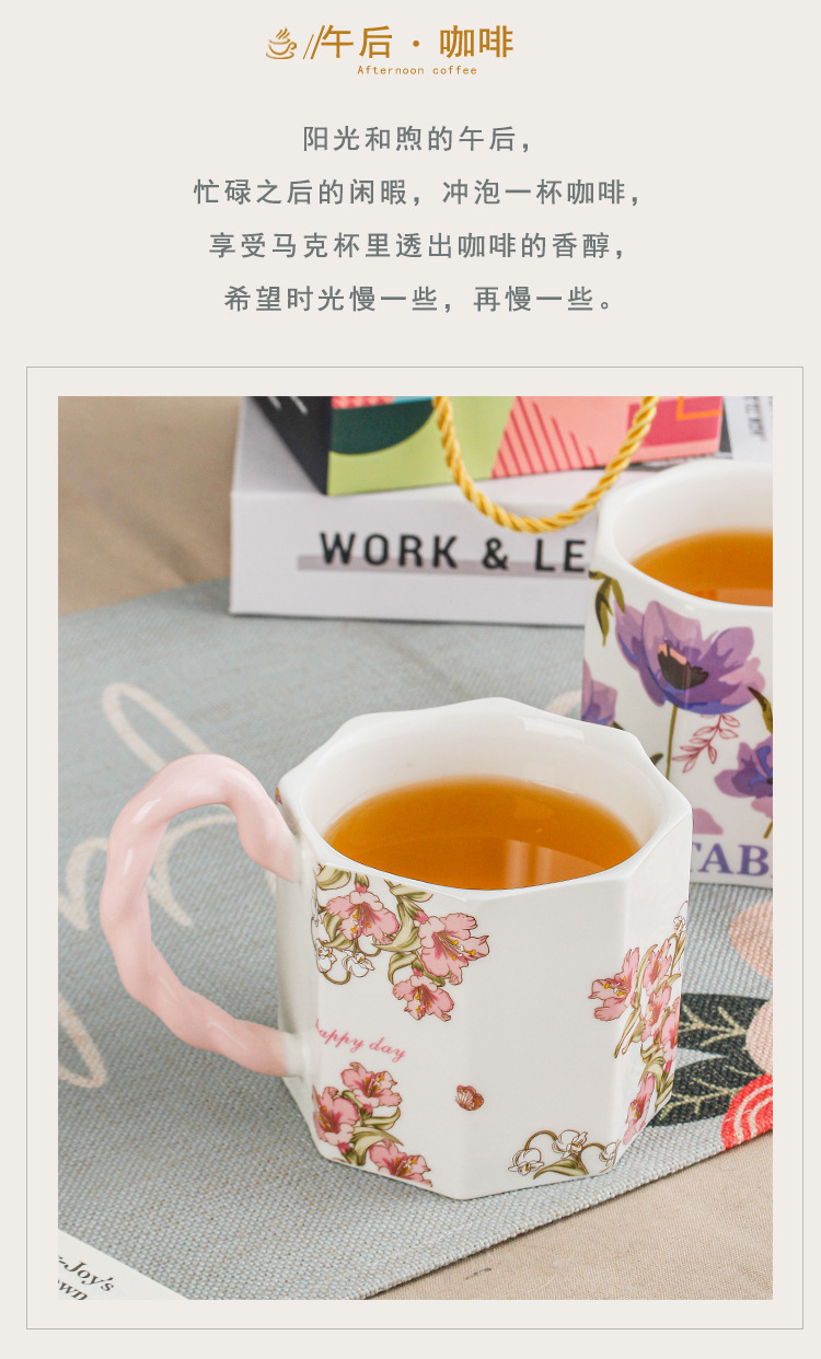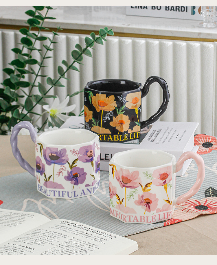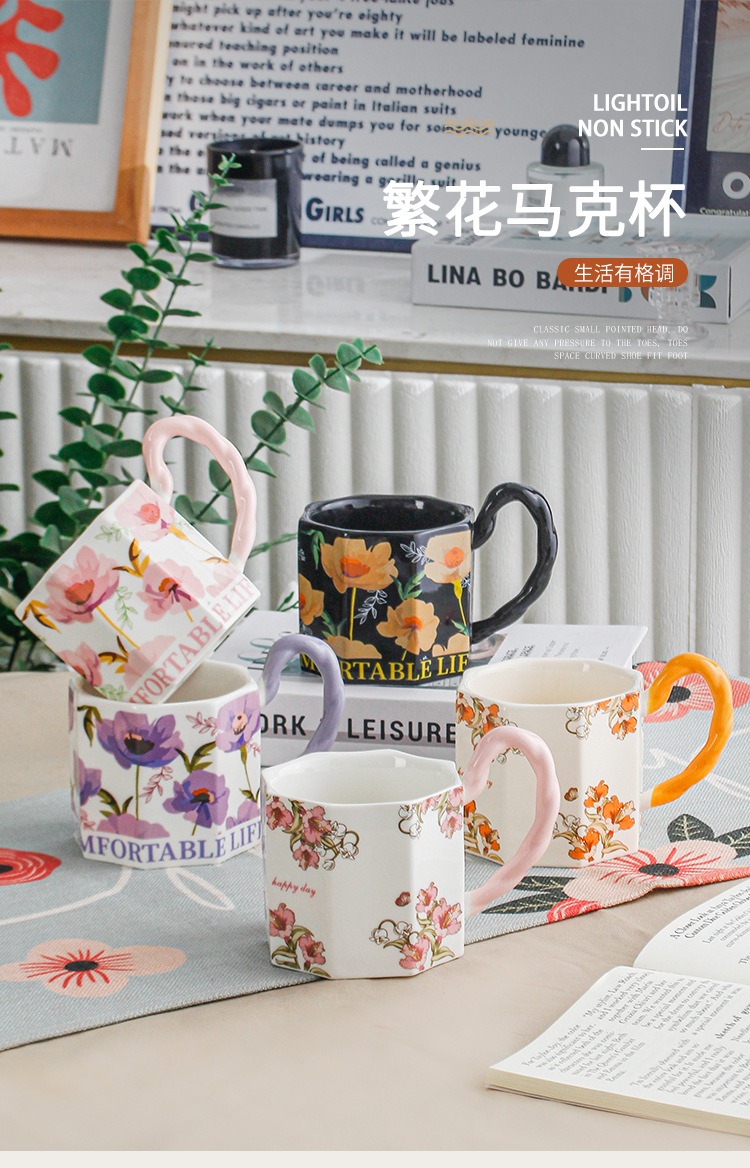 Yu Meiren 2024 Internet Hot Mug Ceramic Water Cup Breakfast Cup Household Flower Couple's Cups Gift Cup