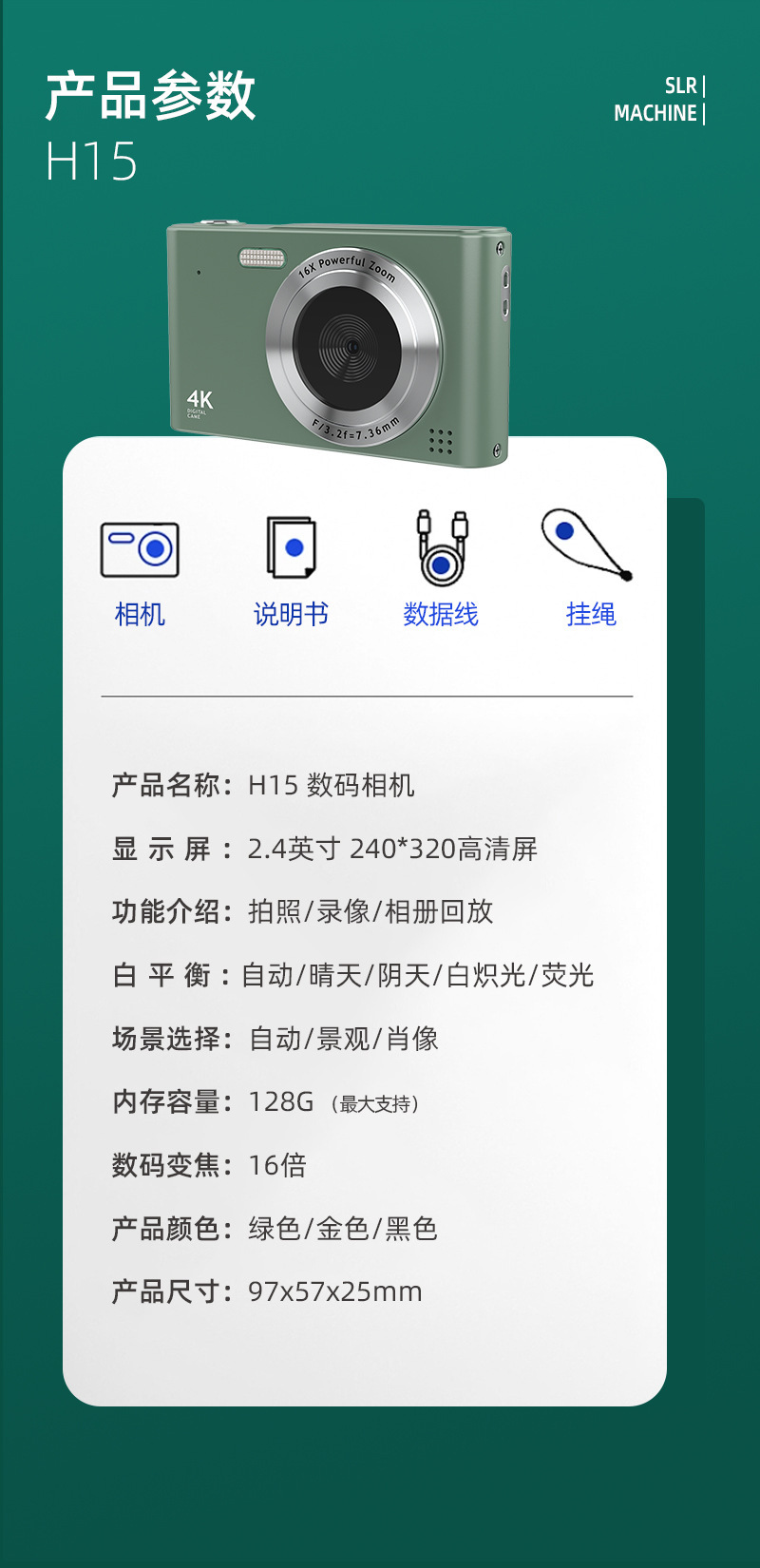 h15 green +64g memory card + android mobile phone adapter + usb card reader