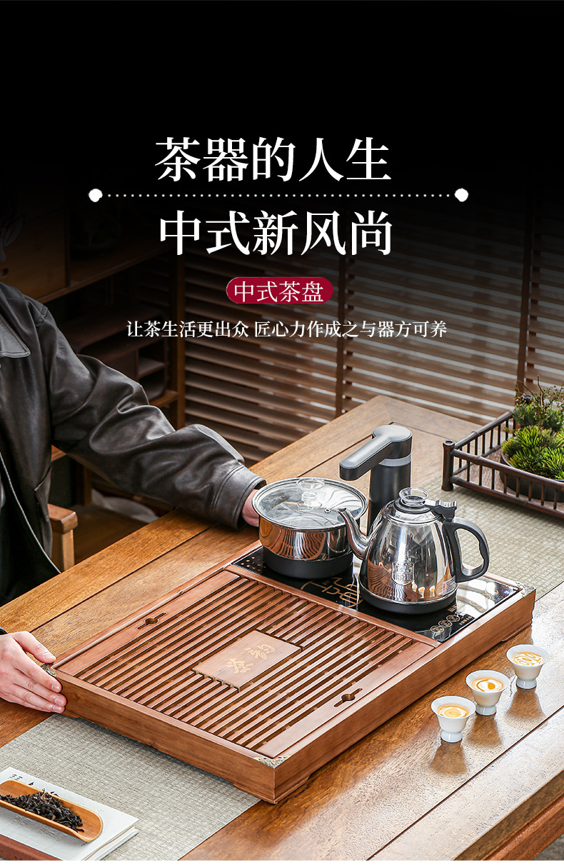solid wood tea rhyme automatic tea tray