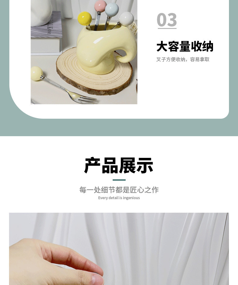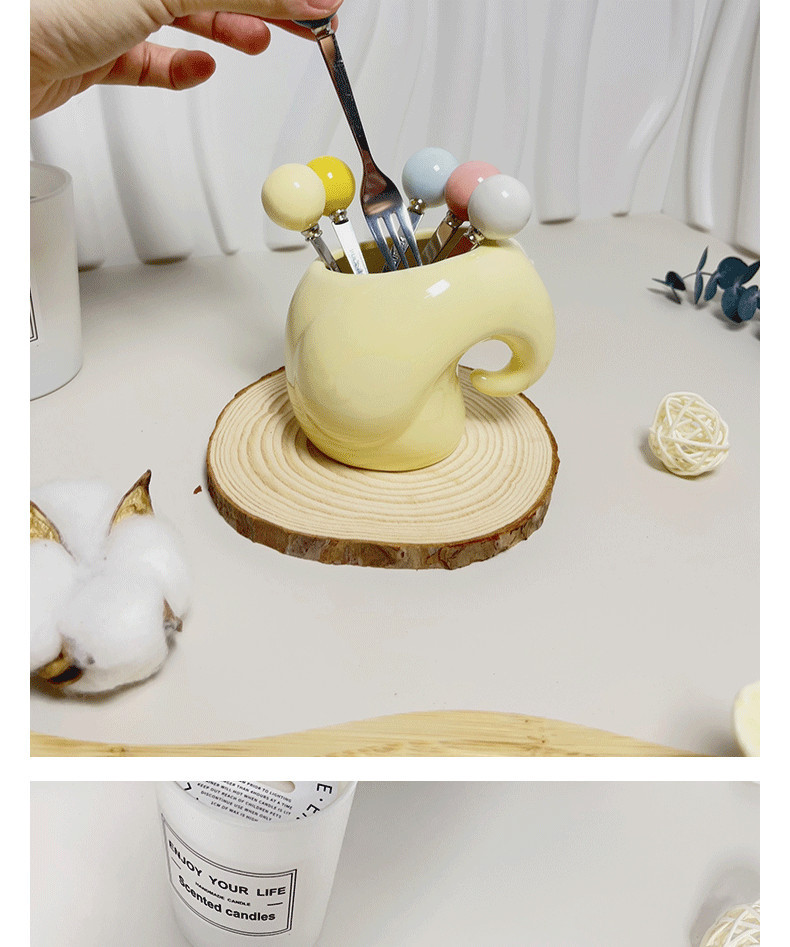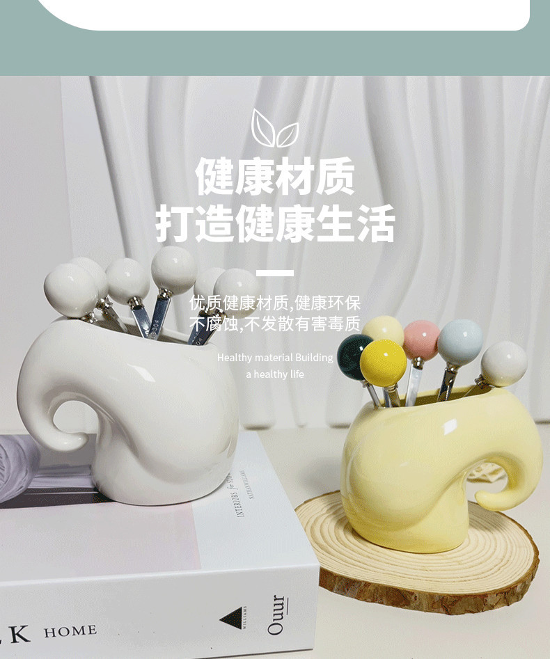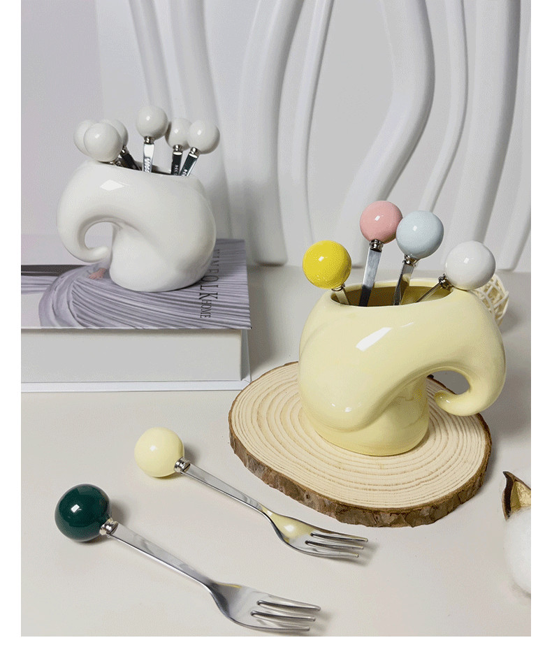 cream style 304 stainless steel fruit fork set household ceramic fruit toothpick fork cake pastry fork