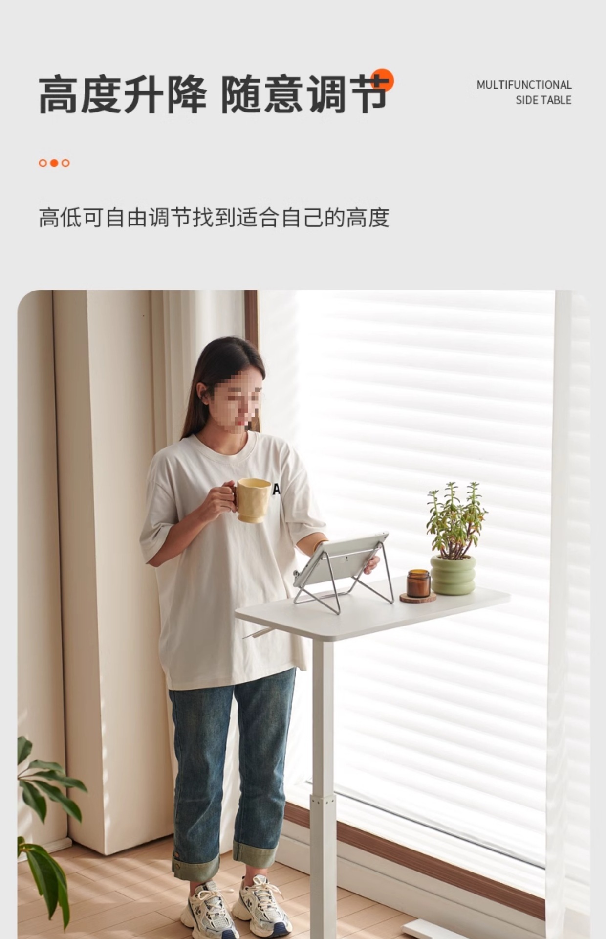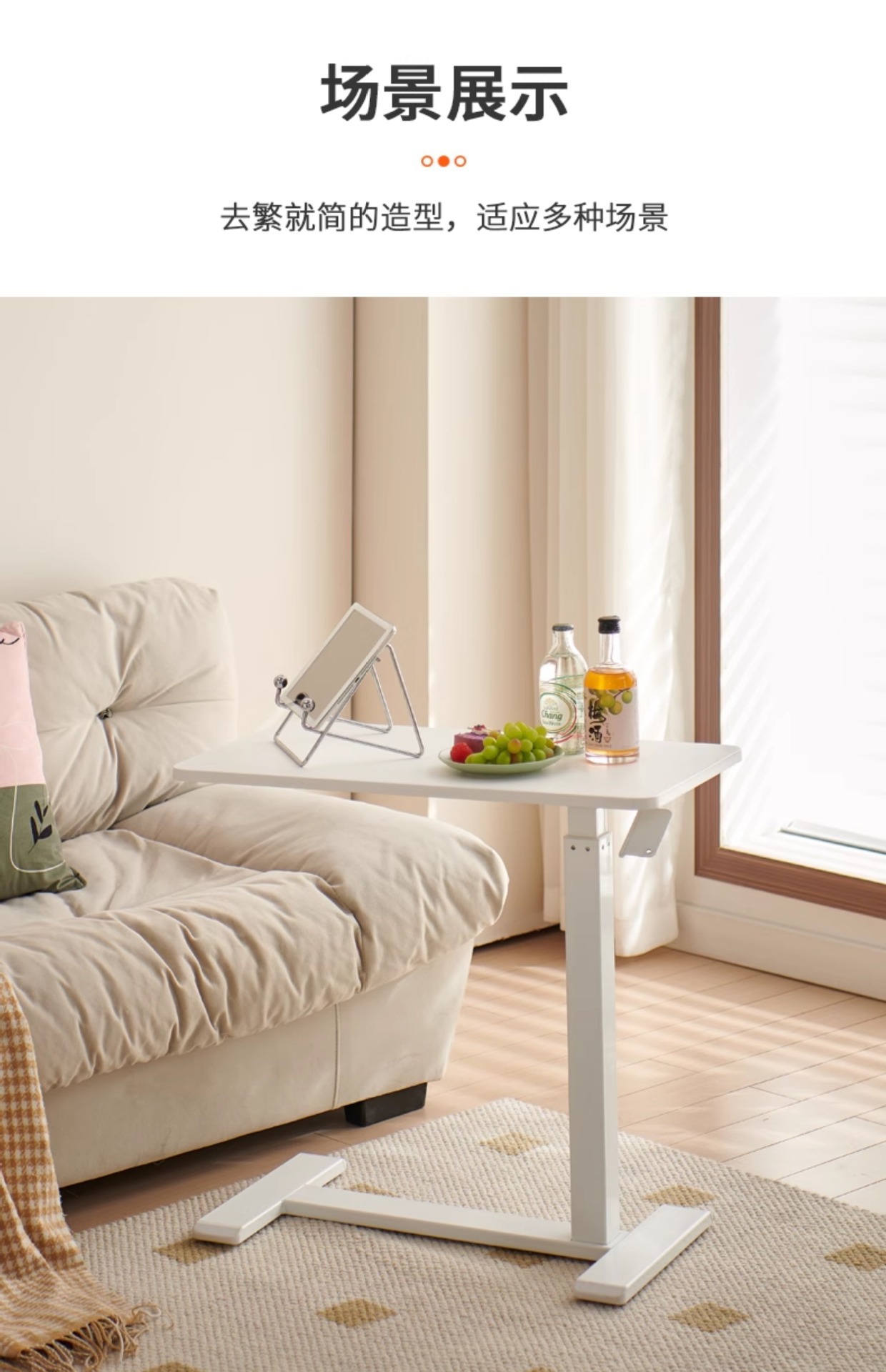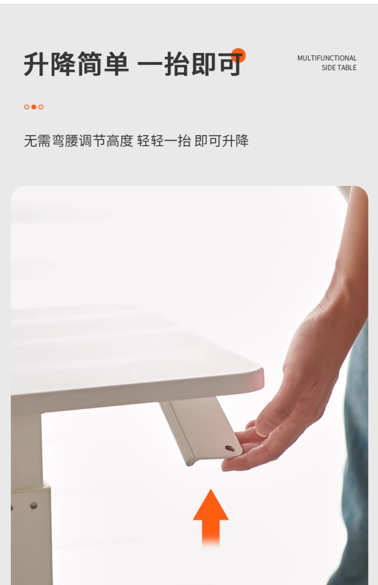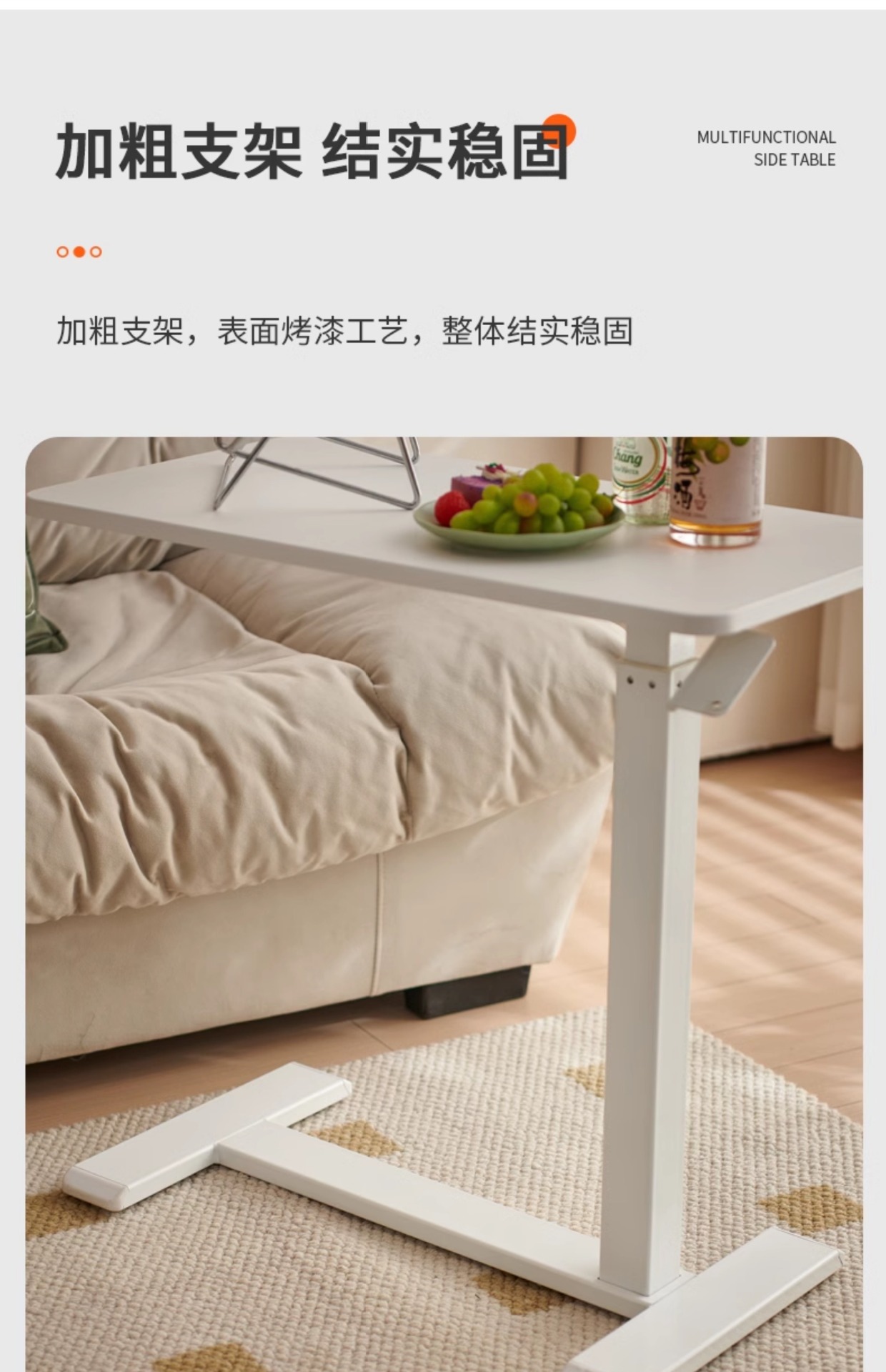 white (reinforced pneumatic lifting) movable side table