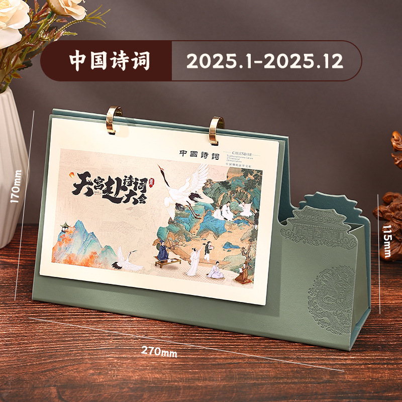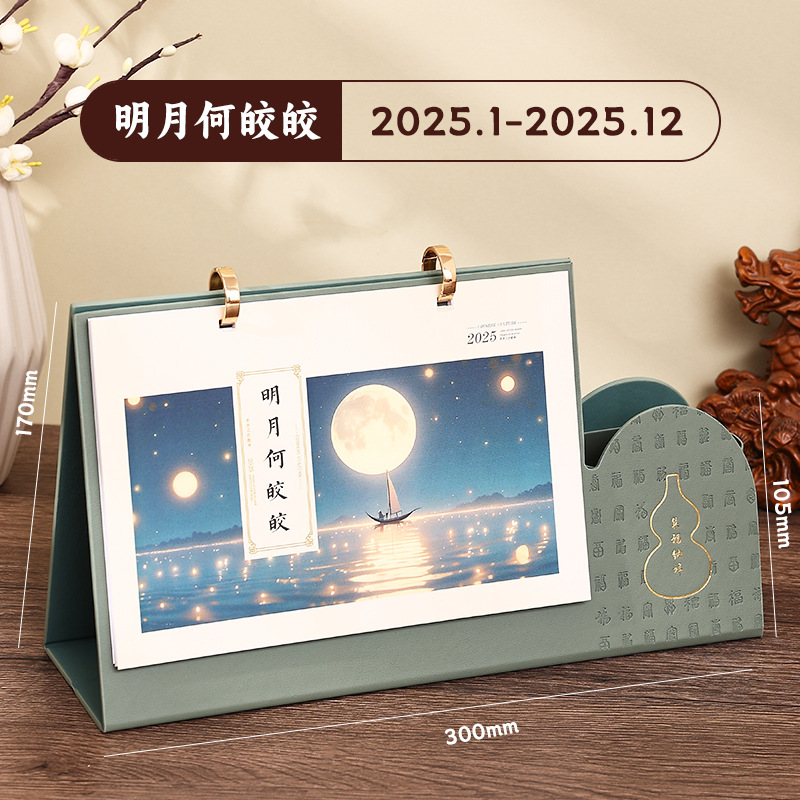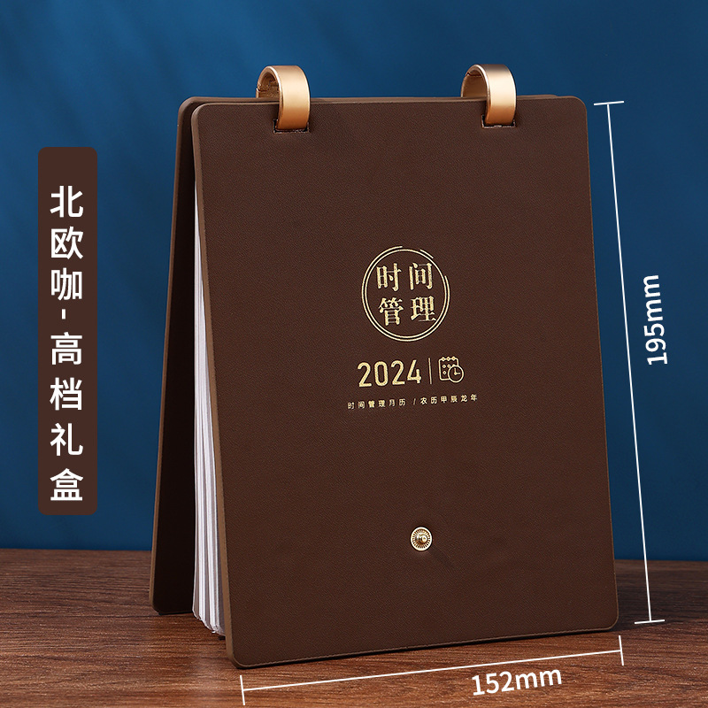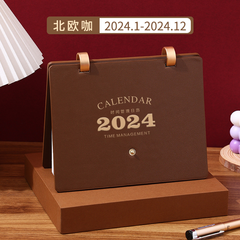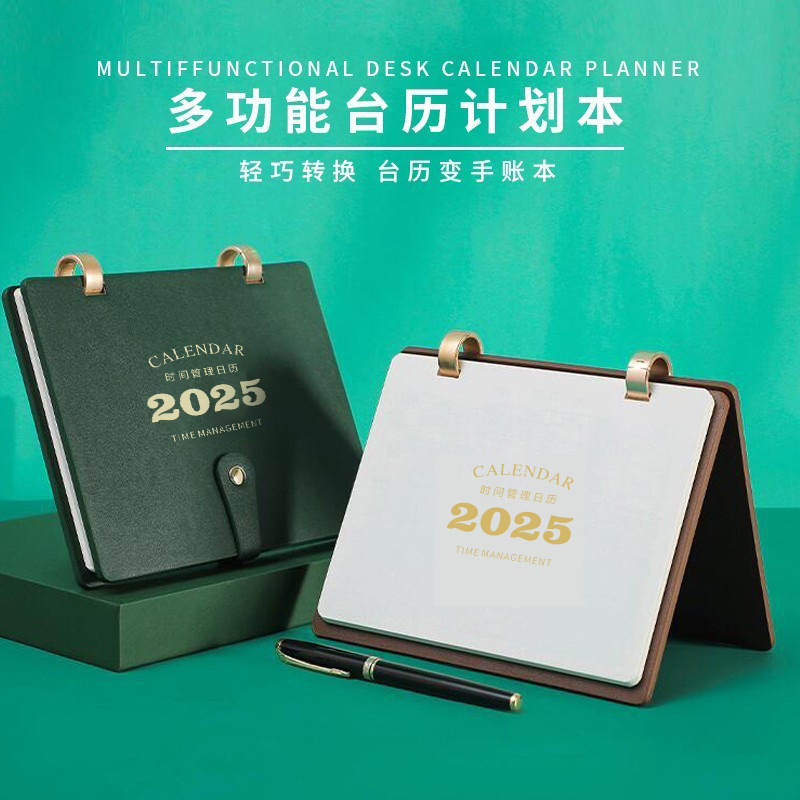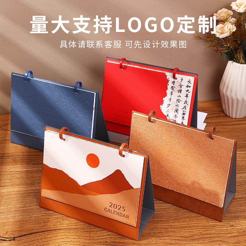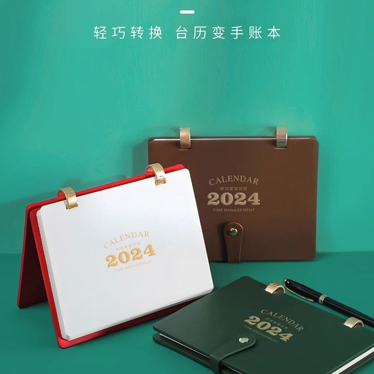 reverse fold leather-double ring desk calendar-remarks color