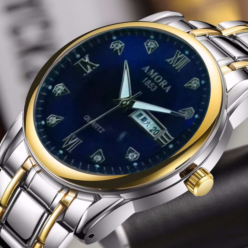 gold steel belt double calendar diamond gold surface