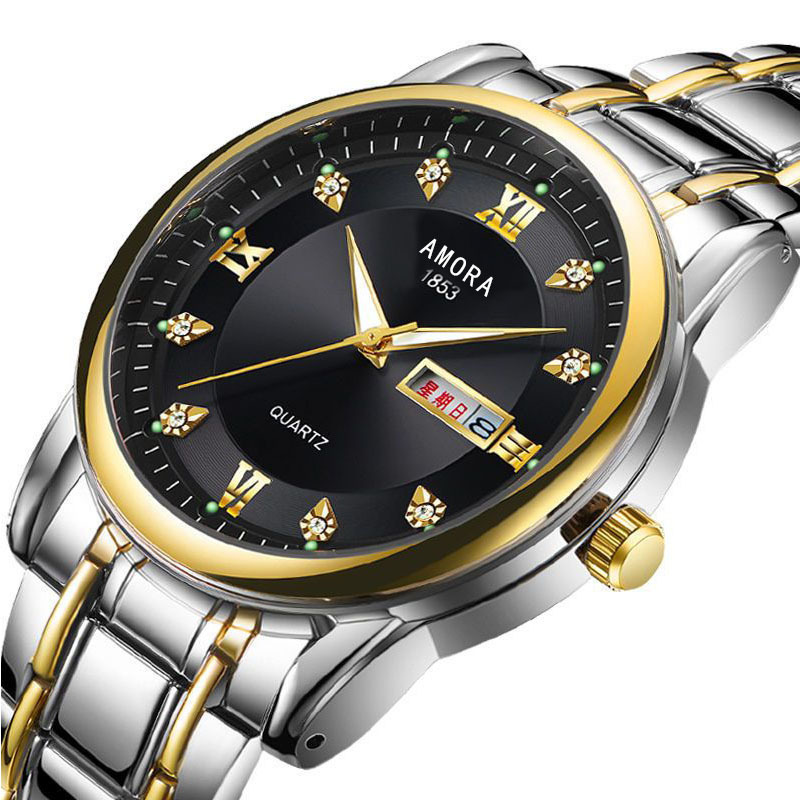 gold steel belt double calendar diamond gold surface