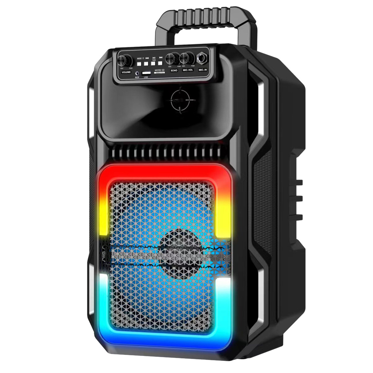 2024 single 8-inch best-selling trolley bluetooth wireless stereo 10w outdoor lawn karaoke square dance rgb lamp colorful light