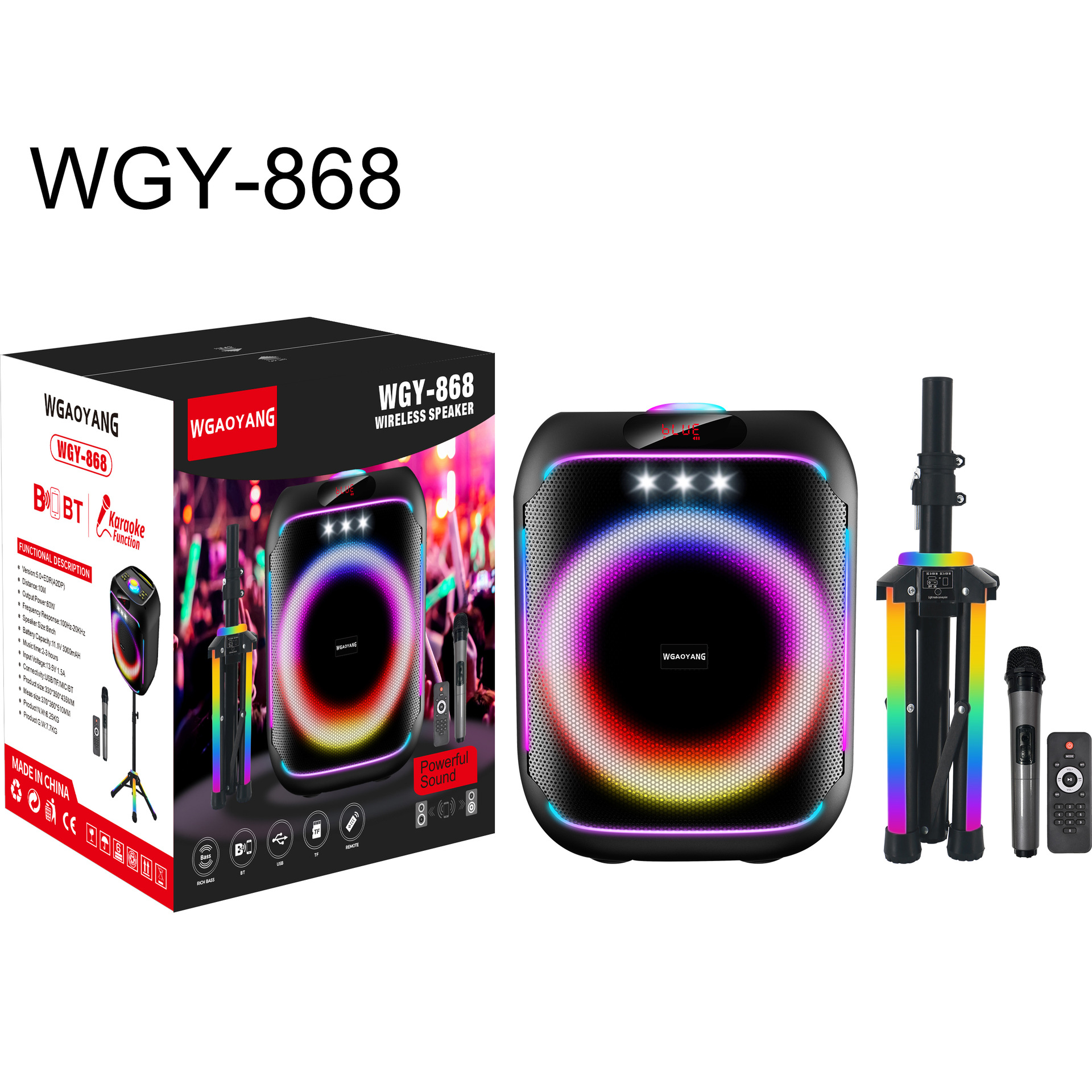 Accessories: Wireless Single Mic + Remote Control + Adapter 13.5V/1.5A