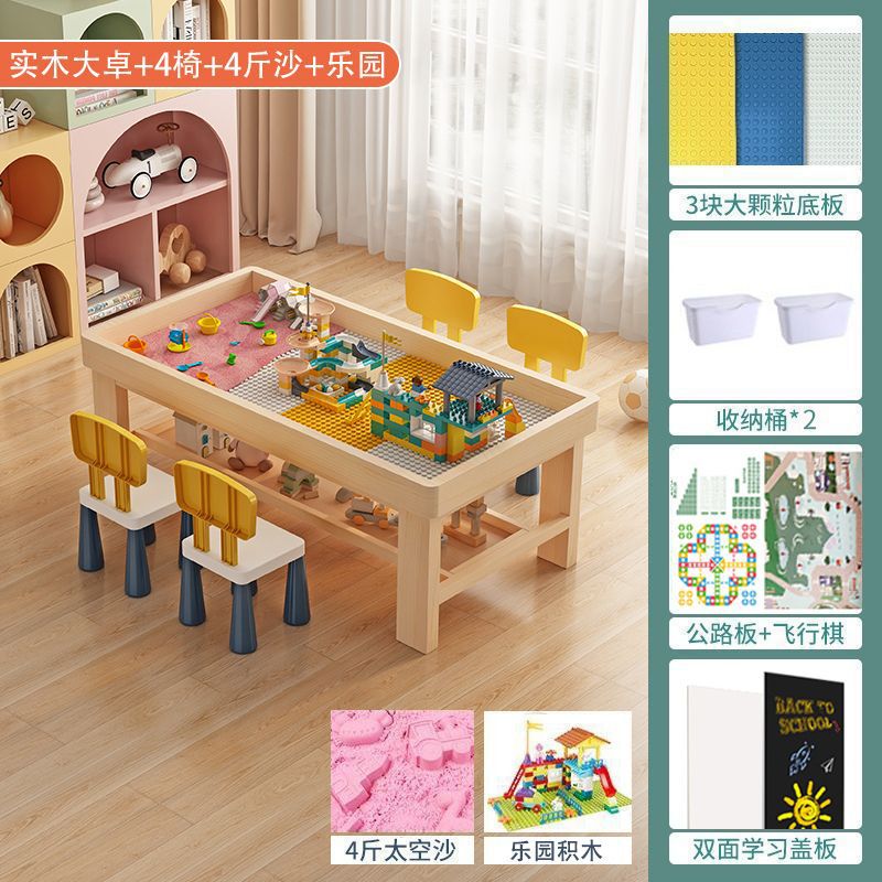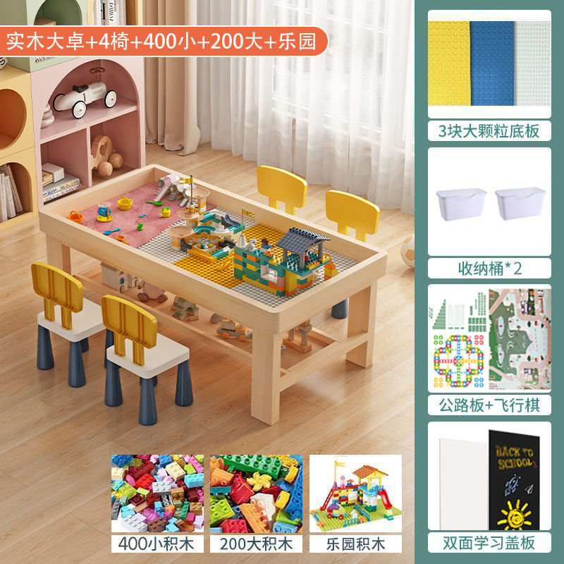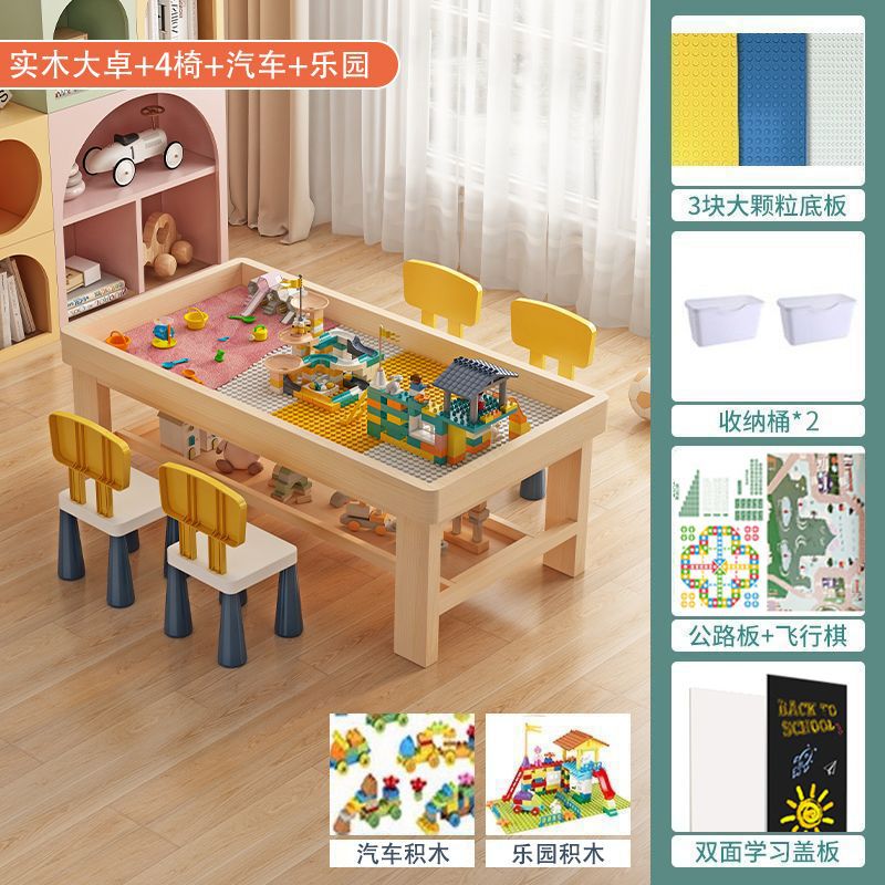 xt108 solid wood double-layer table +4 chairs + car + paradise