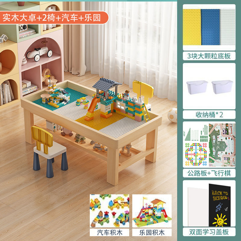 xt108 solid wood double-layer table +2 chairs + car + paradise