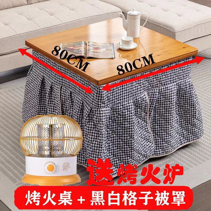 80 thick bamboo folding thermal table + black and white plaid fire cover + roasting stove