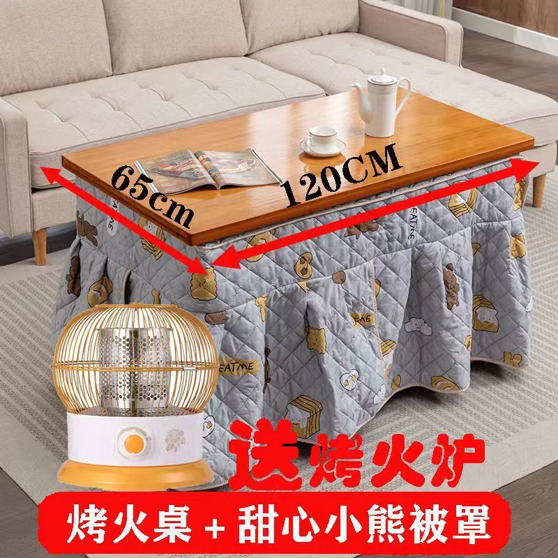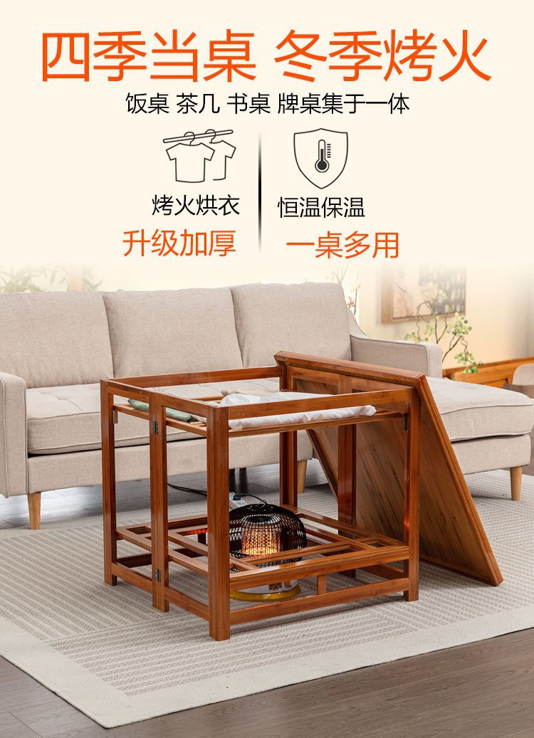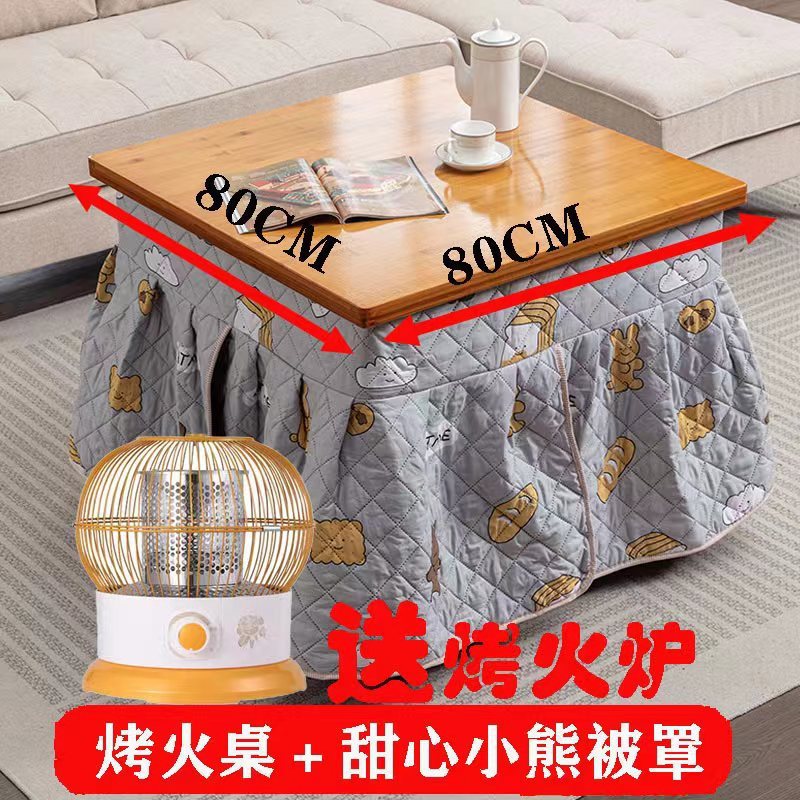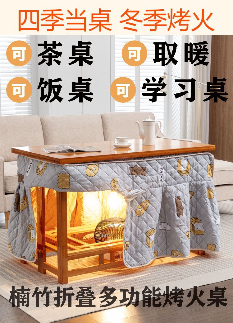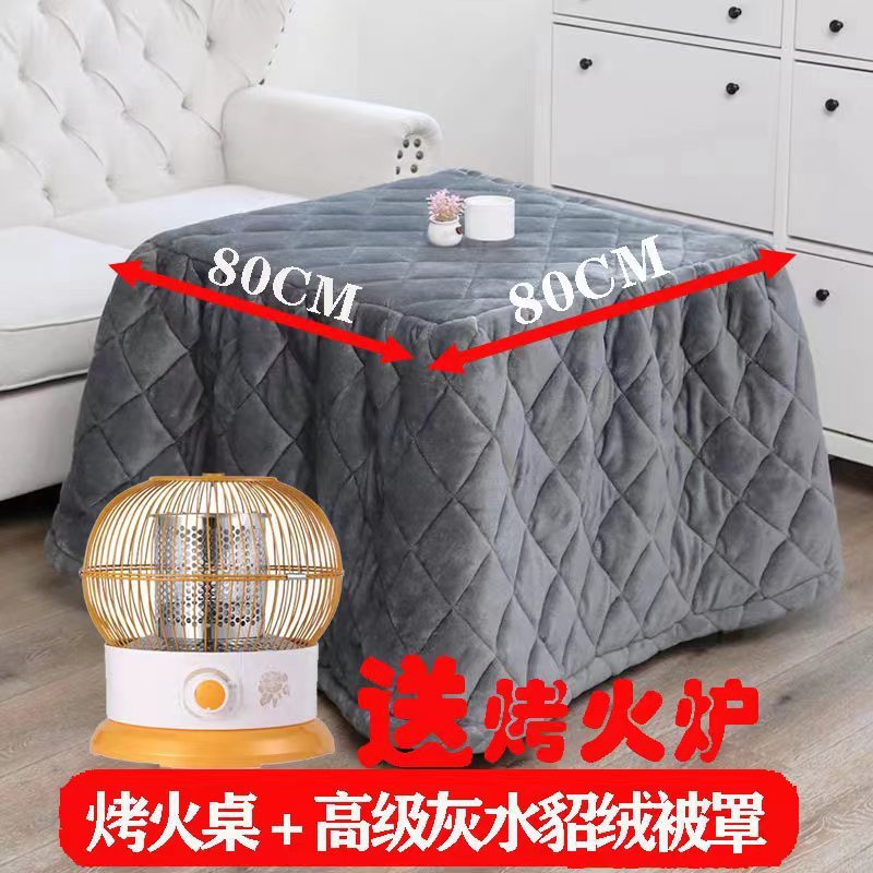 75 thick bamboo folding thermal table + gray mink fur quilt cover + roasting stove