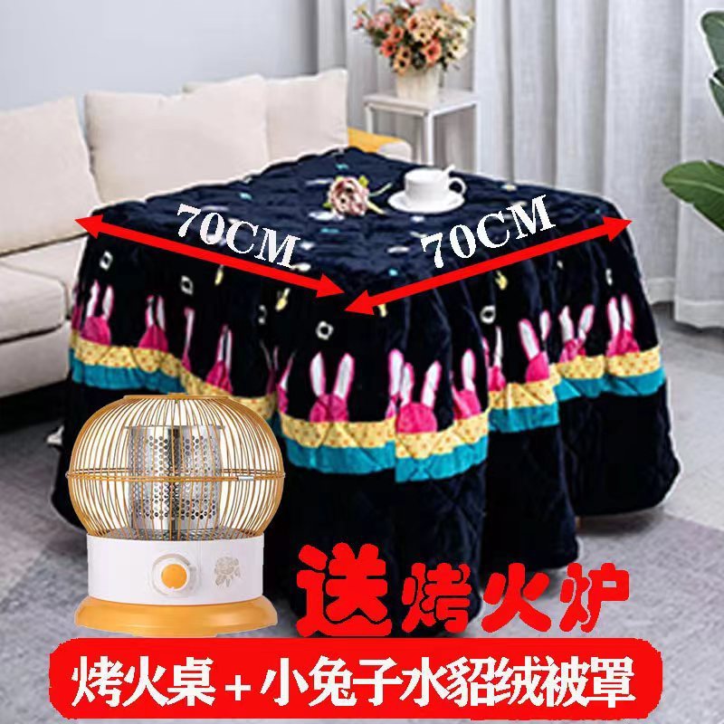 70 thick bamboo folding thermal table + bunny mink fur quilt cover + roasting stove