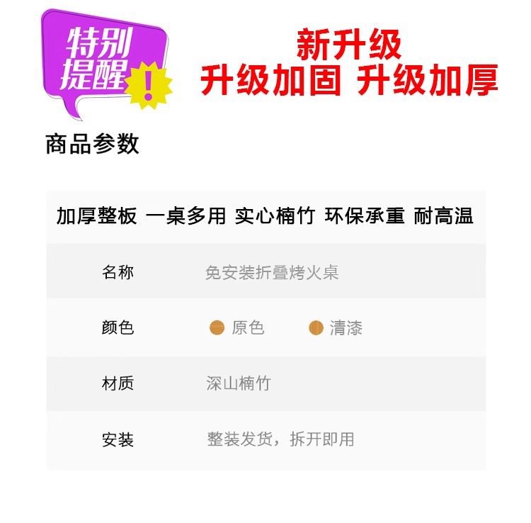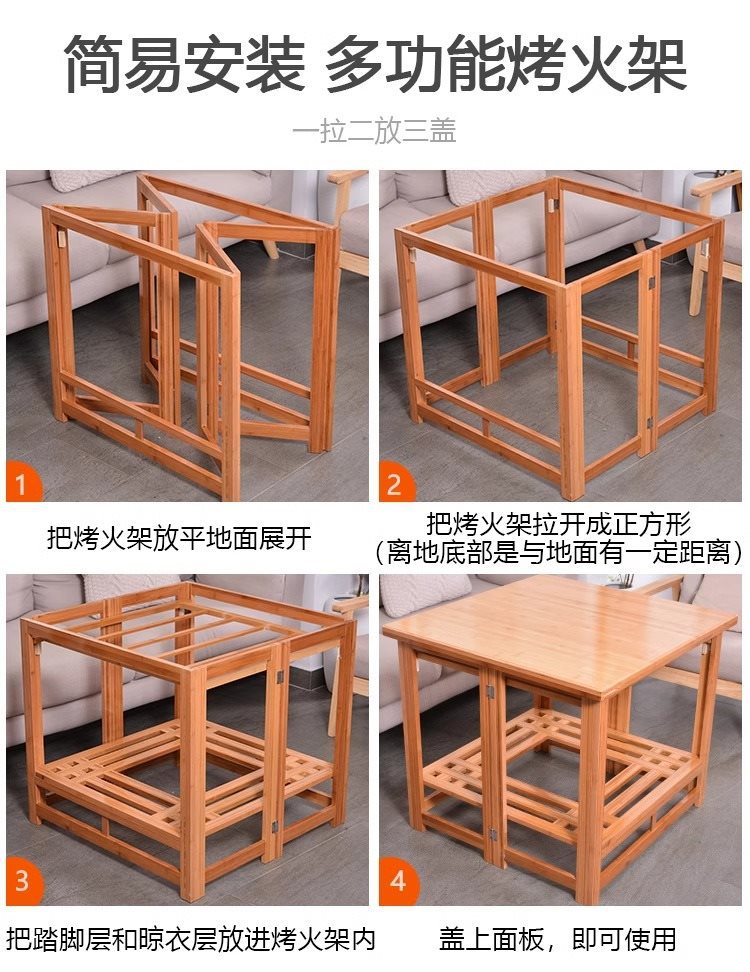75 thick bamboo folding thermal table + sweet bear fire cover + roasting stove
