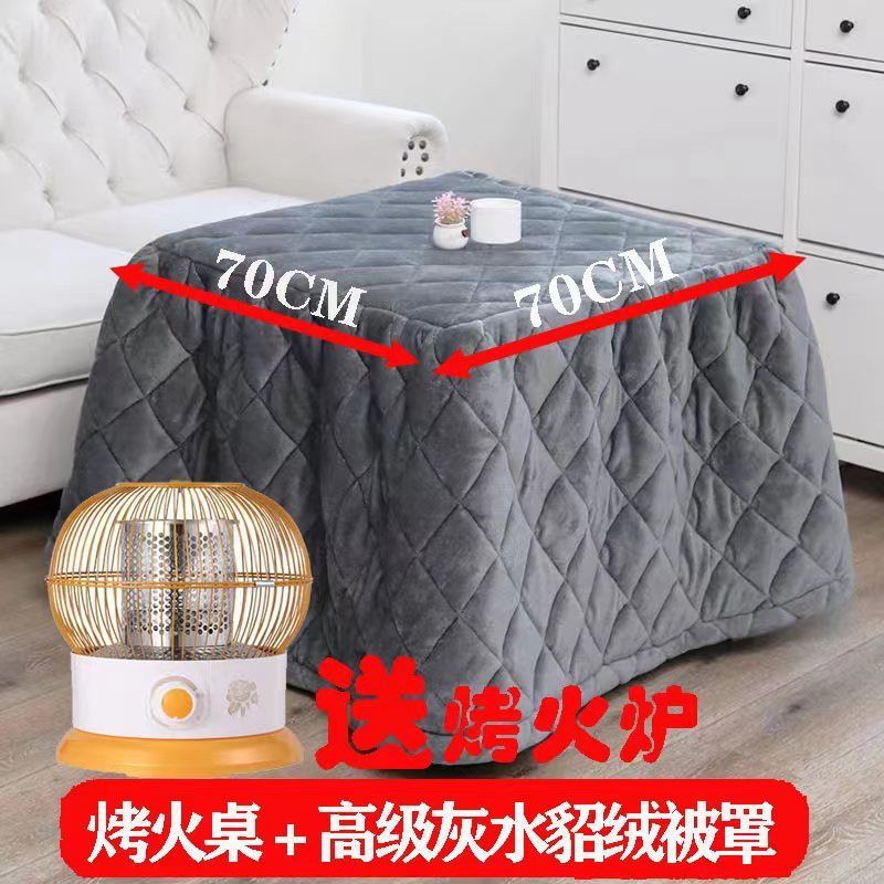70 thick bamboo folding thermal table + gray mink fur quilt cover + roasting stove